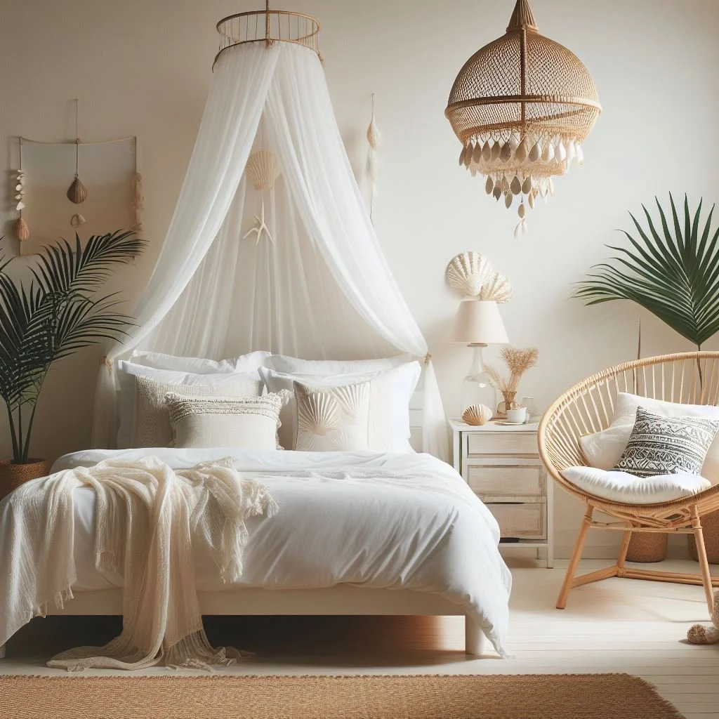 Immerse yourself in the calming embrace of a coastal-inspired bedroom design, where every element whispers of the sea's tranquility. Choose a soothing color palette of soft blues, sandy neutrals, and sun-bleached whites to evoke the essence of ocean waves and sandy shores. Incorporate natural materials like weathered wood, rattan, and linen to add texture and warmth reminiscent of driftwood and beach dunes. Introduce nautical accents such as striped textiles, seashell decor, and rope details to further enhance the coastal theme. With each element carefully curated, your bedroom becomes a serene oasis, offering a peaceful retreat inspired by the beauty of the coast.