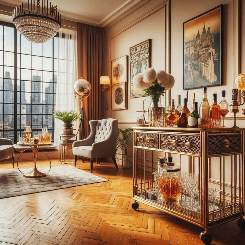Add a touch of retro charm to your apartment with vintage bar carts featuring Art Deco-inspired designs, polished finishes, and mirrored shelves. Bar carts are not only practical for serving drinks and entertaining guests but also stylish statement pieces that add a touch of glamour to any space. Look for carts with sleek lines, geometric shapes, and luxurious detailing to capture the essence of the Art Deco era. Whether it's a brass cart, chrome cart, or lacquered cart, incorporating a vintage bar cart into your apartment decor adds a touch of old-world elegance and sophistication to your living space.