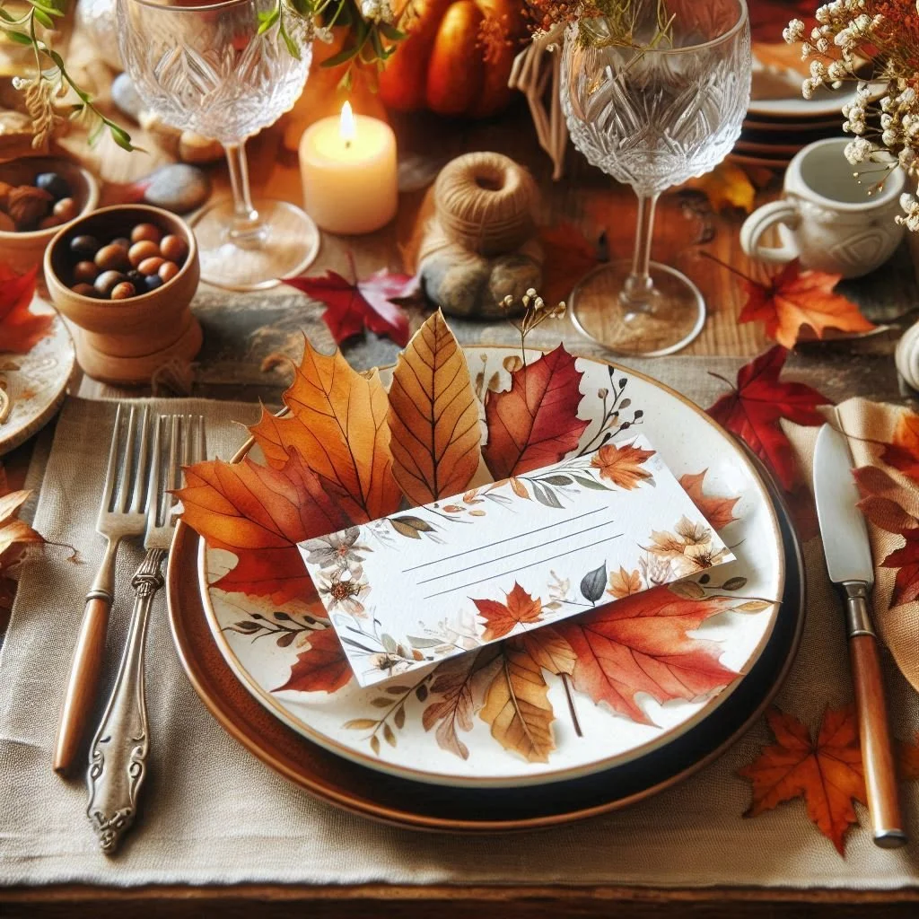 9. Personalized Place Cards with Autumn Leaves