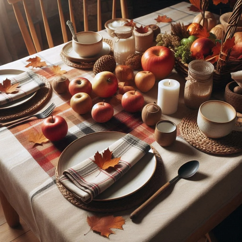 Want to make your table extra inviting for those cozy fall nights? Layer on the texture! Try a rustic burlap or soft linen tablecloth, drape a plaid throw over your chairs, and light some candles to add that warm, flickering glow. Your table will instantly feel like the perfect spot for a snug, autumn evening.