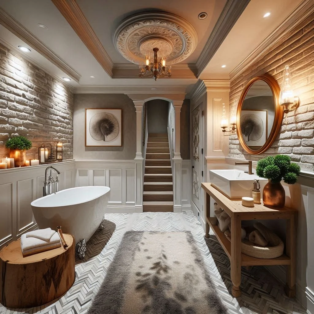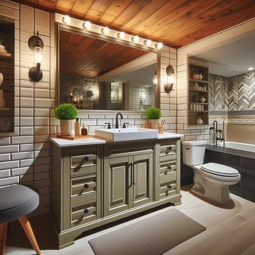 Tiles can transform the look and feel of a basement bathroom, offering both style and functionality. Trendy patterns like subway tiles or geometric designs can instantly modernize the space, adding a sleek, contemporary touch. Opting for light-colored tiles is especially effective in a basement bathroom, as they reflect light and help create the illusion of more space, making the room feel brighter and more open. For an extra touch of flair, consider incorporating mosaic tiles on an accent wall or floor to draw attention and add a splash of personality. Whether you go for a subtle look or something bold, using tiles creatively can elevate the entire aesthetic of your bathroom, making it both practical and visually appealing.