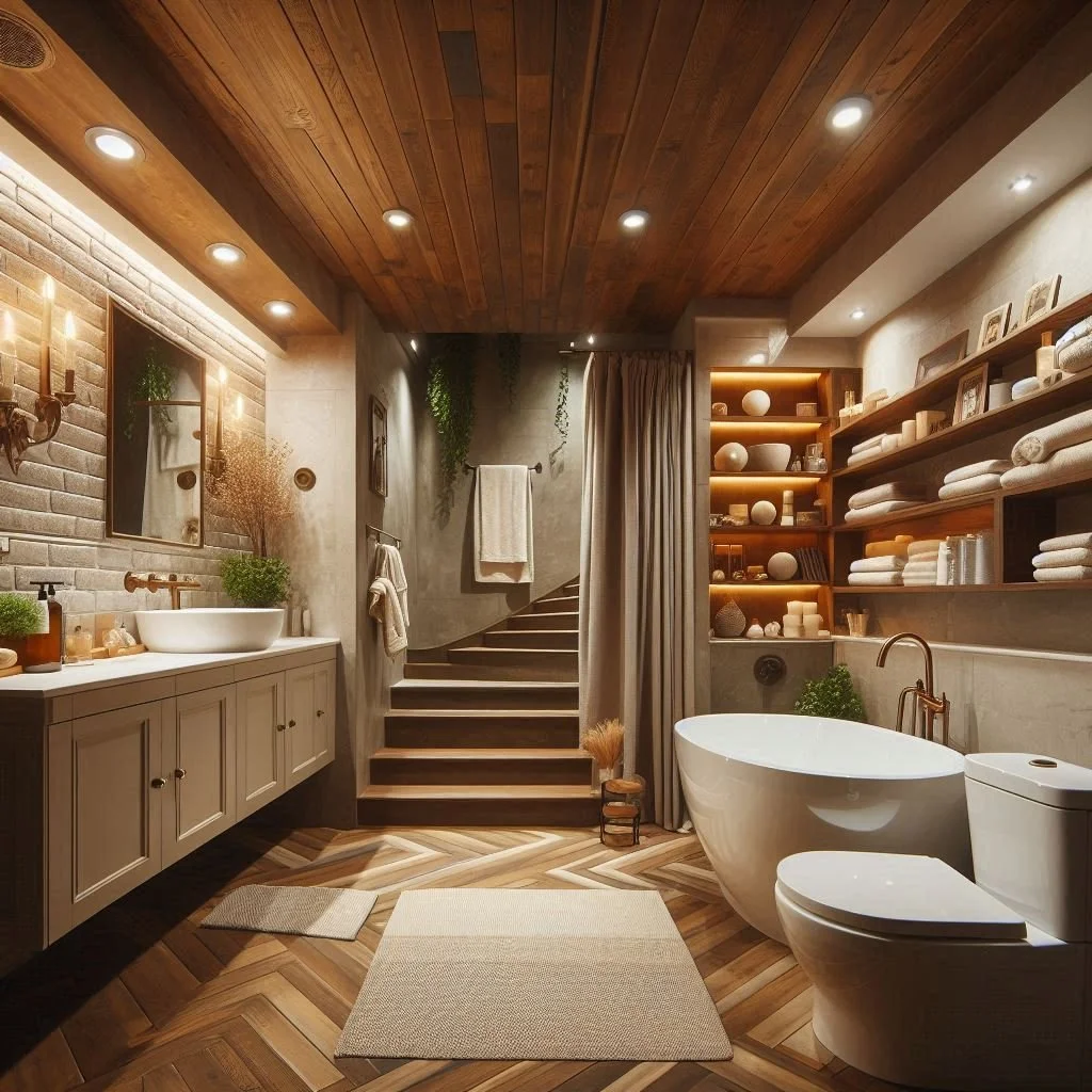 The right flooring can dramatically set the tone for your basement bathroom, combining both style and functionality. Luxury vinyl planks and ceramic tiles are excellent options, offering durability and a sleek aesthetic to withstand the unique conditions of a basement. These water-resistant materials are ideal for high-moisture environments, ensuring long-lasting performance while maintaining a modern look. If you want to add extra comfort and warmth, especially in a cooler basement, consider incorporating radiant floor heating beneath the tiles or planks. This not only enhances the cozy atmosphere but also provides a luxurious touch. Choosing the right flooring ensures your basement bathroom is both visually appealing and well-equipped to handle the challenges of a basement environment.
