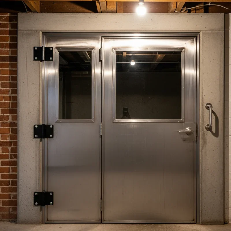 Embrace the urban loft aesthetic with industrial steel doors that make a bold statement while providing unmatched durability. These doors bring that coveted warehouse-conversion vibe to suburban homes, featuring clean lines and minimal ornamentation that epitomizes modern design. The combination of steel frames with strategically placed glass inserts creates visual interest without overwhelming the space. Powder coating technology offers countless color options beyond basic black, allowing you to match or contrast with your existing decor. The inherent strength of steel means these doors can accommodate larger glass panels than traditional wood frames, maximizing light transmission while maintaining structural integrity. Add industrial-style hardware like exposed hinges and lever handles to complete the look. These doors particularly shine in contemporary homes where the basement houses a home office or creative studio.