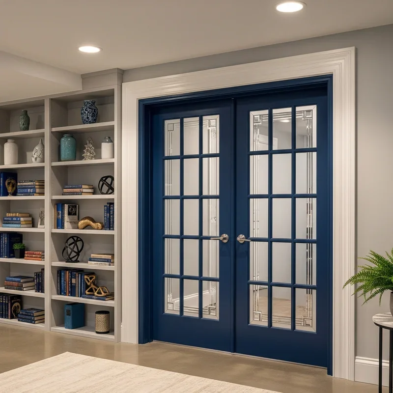 Experience the magic of smart glass technology that transforms from transparent to opaque at the flip of a switch! These high-tech doors use electrochromic or LCD technology to provide instant privacy without sacrificing the option for openness and light transmission. Perfect for basements that serve multiple purposes, you can maintain visual connection during family time then create privacy for focused work or exercise sessions. The technology integrates with home automation systems, allowing scheduling, remote control, or even voice activation. Some versions offer gradient opacity, letting you choose exactly how much privacy you need. While the initial investment exceeds traditional options, the versatility and wow factor make smart glass doors increasingly popular in modern homes. Energy efficiency benefits include reduced heating and cooling loads by controlling solar gain through the glass.