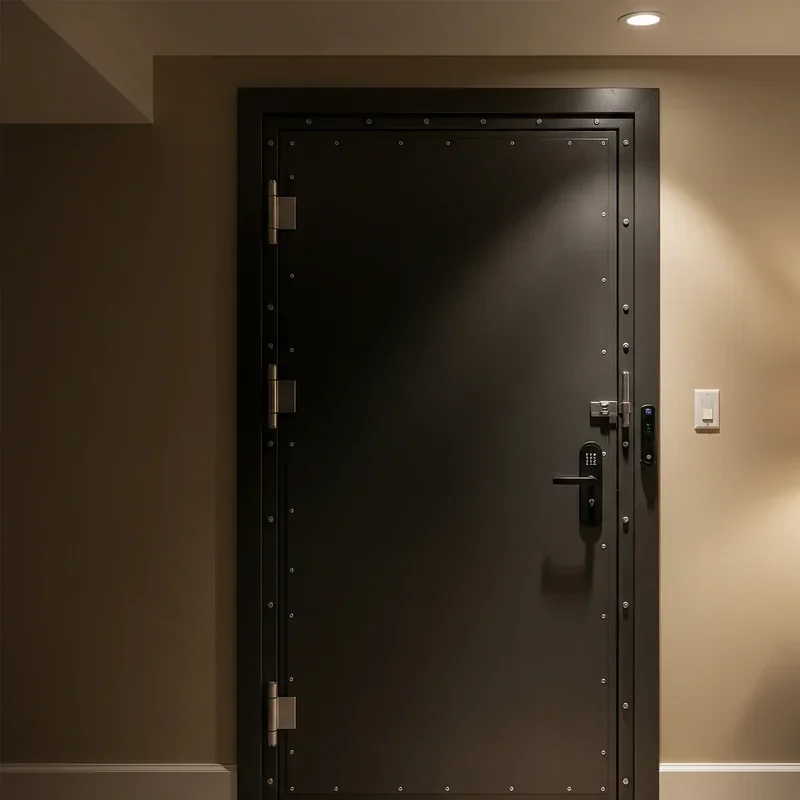 Transform your basement entrance into a secret passage that doubles the visual space of your hallway or room! Mirror-finished doors serve multiple purposes beyond their primary function, acting as full-length mirrors while cleverly disguising the basement entrance. This optical illusion makes narrow hallways feel twice as wide and adds functionality for last-minute appearance checks. Modern mirror doors use shatterproof glass or acrylic alternatives that provide safety without sacrificing reflection quality. The frames can be minimal for a floating mirror effect or substantial for a more traditional look. Some innovative designs incorporate smart mirror technology with built-in lighting or display capabilities. The reflective surface also bounces light around, brightening typically dim basement entrances. For privacy-conscious homeowners, one-way mirror films allow you to see out while maintaining the mirror effect from the hallway side.