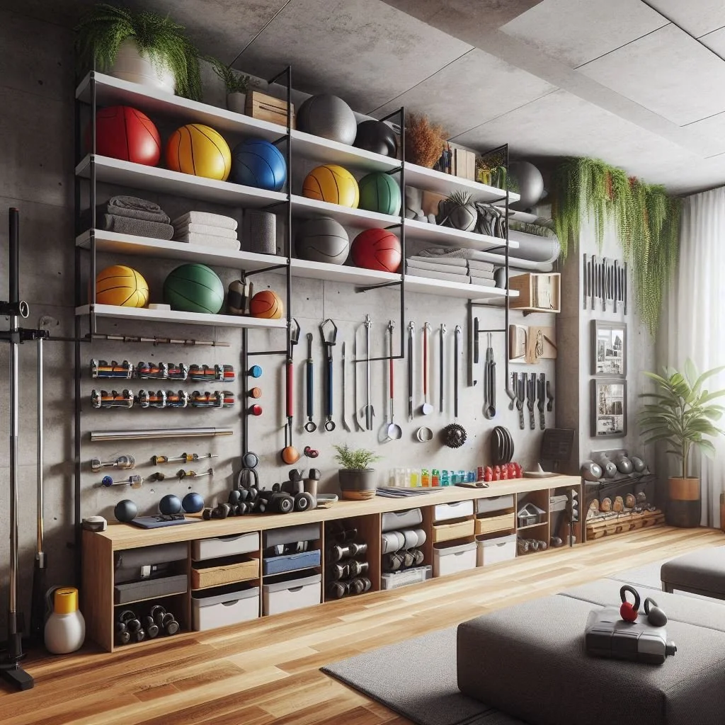 A cluttered gym can quickly kill your motivation, making it essential to keep things organized. Wall-mounted storage is a perfect solution for maintaining order without using up precious floor space. Install shelves or racks to neatly store weights, resistance bands, and yoga mats. Adding hooks on the walls provides convenient spots for hanging jump ropes, boxing gloves, or towels. If you’re a fan of CrossFit, consider wall-mounted rigs and bars, which allow for intense strength training without crowding the floor. Vertical storage not only frees up room but also keeps your equipment easily accessible. By utilizing your walls, you can maintain a tidy, functional gym space that encourages productivity and keeps distractions to a minimum.