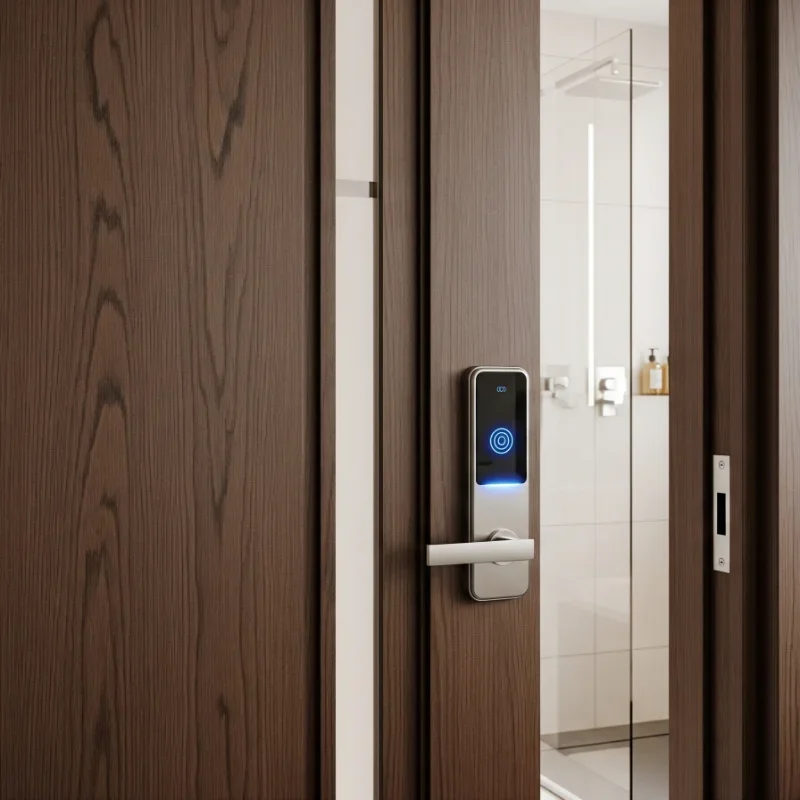 Step into the future with smart lock-equipped doors that bring convenience and security to your bathroom entrance. These high-tech solutions eliminate fumbling with locks during emergency situations! Keypad entry means no more locked-out disasters when nature calls urgently. Smartphone connectivity allows remote locking/unlocking and usage monitoring for households with kids. Auto-lock features ensure privacy without remembering to turn the lock. Indicator lights show occupancy status, preventing awkward door-rattling attempts. Battery backup systems maintain function during power outages. Voice control integration with smart home systems adds hands-free convenience. Temporary access codes work great for guests without compromising permanent security. The sleek, modern appearance of smart locks enhances contemporary door designs. Your bathroom door becomes an intelligent barrier that simplifies daily routines while improving home security.
