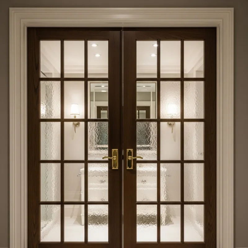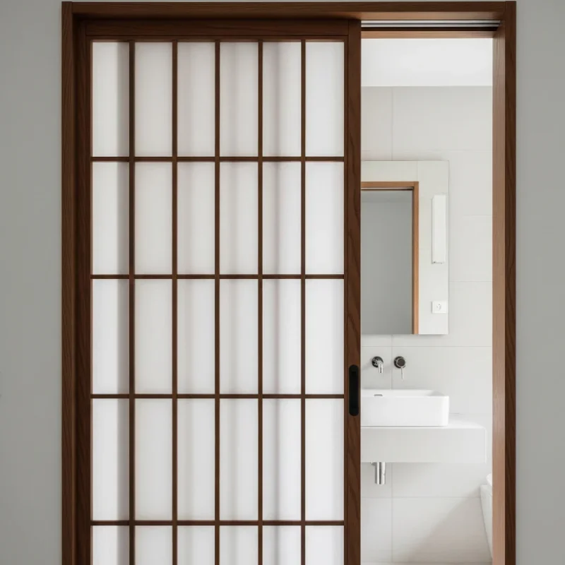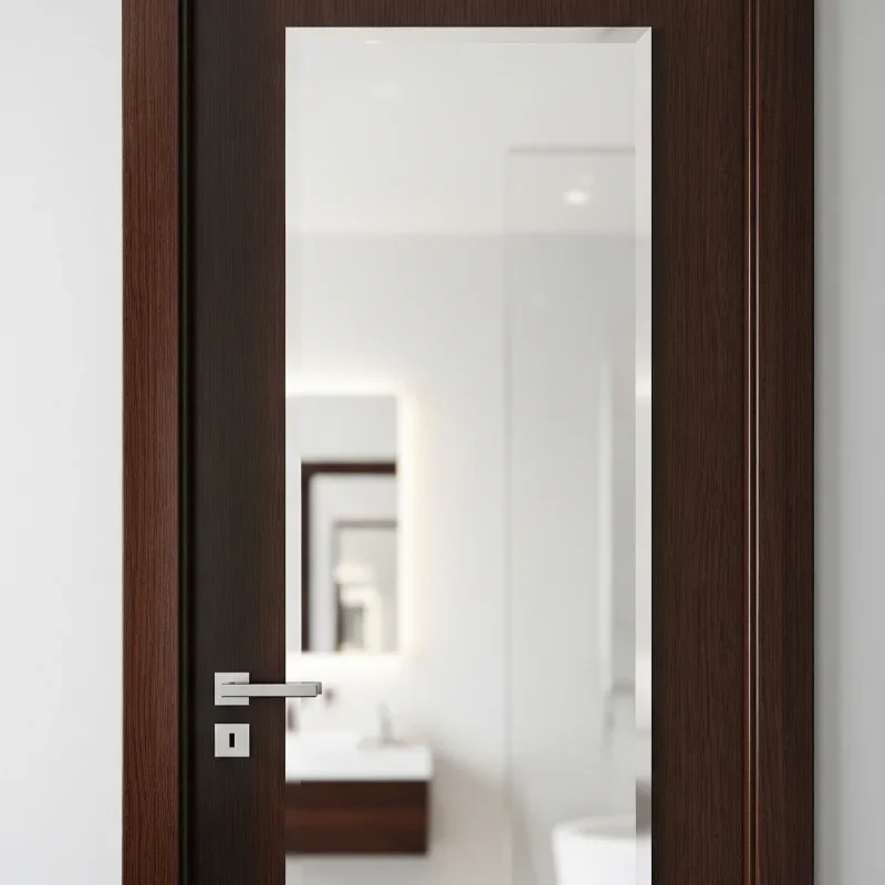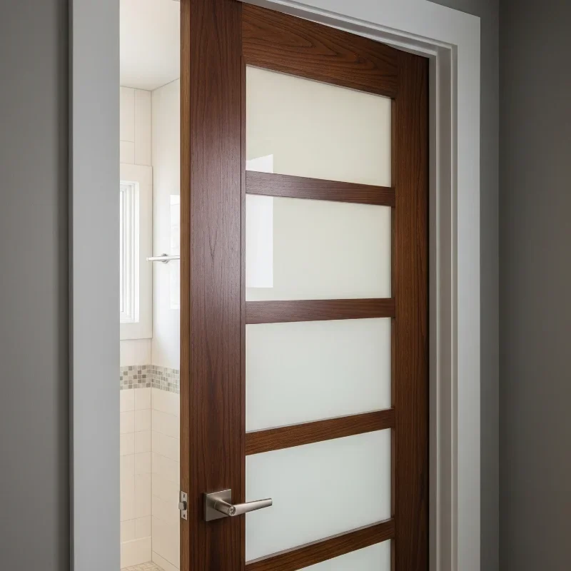 Balance privacy with light transmission using frosted glass doors that turn your bathroom entrance into an architectural feature. These luminous barriers let natural light flow between spaces while obscuring views, like having a privacy filter in real life! Choose from various frosting patterns including etched designs, gradient opacity, or geometric patterns that add artistic flair. The glass can be tempered for safety, ensuring durability in high-traffic areas. Frame options range from minimal aluminum to warm wood, matching any design aesthetic. Partial frosting creates interesting visual effects while maintaining some transparency for spacious feelings. The light-enhancing properties make small, windowless bathrooms feel less claustrophobic and more connected to adjacent spaces. Cleaning is surprisingly easy with proper glass cleaners, and the surface resists moisture damage better than wood. Your bathroom door becomes a design element that enhances both rooms it connects.