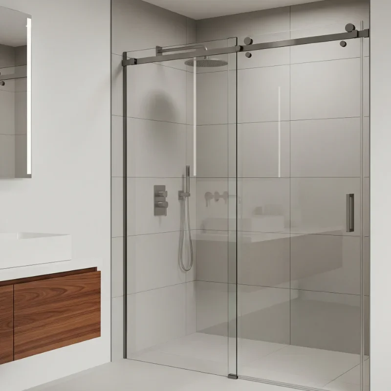 Embrace contemporary minimalism with sleek sliding glass doors that make your bathroom feel like a luxury hotel suite. These frameless or slim-frame beauties glide effortlessly on hidden tracks, creating clean lines that modern design lovers crave! Tempered glass ensures safety while providing crystal-clear or frosted options depending on privacy needs. The sliding mechanism works perfectly in tight spaces where traditional doors would be impractical. Add privacy film in creative patterns for customization without permanent etching. Soft-close mechanisms prevent slamming and reduce wear on hardware. The transparency, even when frosted, maintains visual connection between spaces, preventing that closed-off feeling. Easy cleaning and moisture resistance make them practical for humid bathroom environments. Consider adding LED strip lighting along the track for dramatic nighttime effects. Your bathroom entrance becomes a sophisticated statement that screams contemporary elegance.
