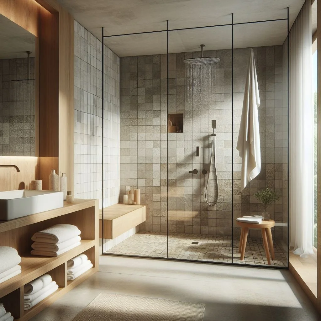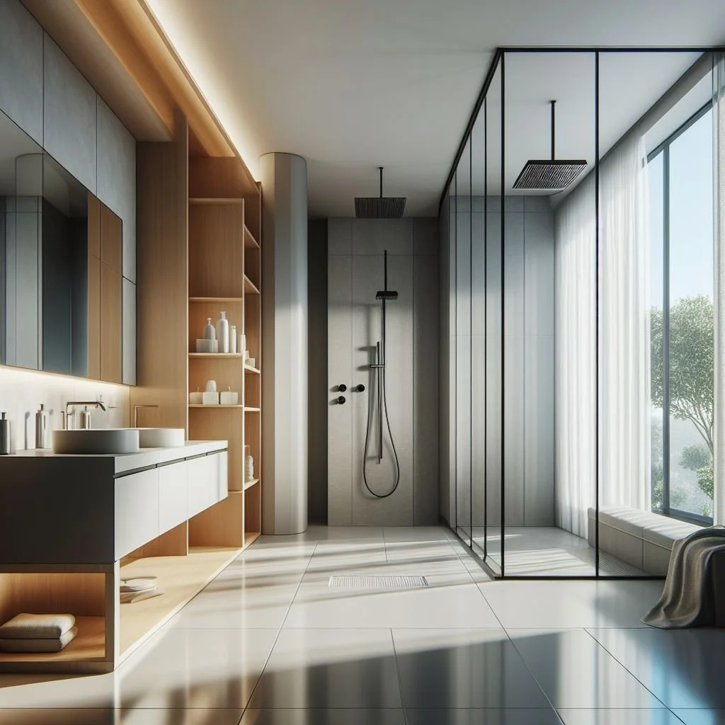 Choose frameless glass enclosures and rainfall showerheads for open shower designs that enhance the feeling of spaciousness and modernity in your bathroom. The sleek lines of frameless glass enclosures create a seamless transition between the shower and the rest of the space, visually expanding the area and allowing natural light to flow freely. Paired with luxurious rainfall showerheads, these open shower designs offer a rejuvenating experience that combines style with functionality. Embrace the minimalist elegance of this design approach as it promotes a sense of openness and sophistication, transforming your bathroom into a contemporary sanctuary of relaxation and refinement.