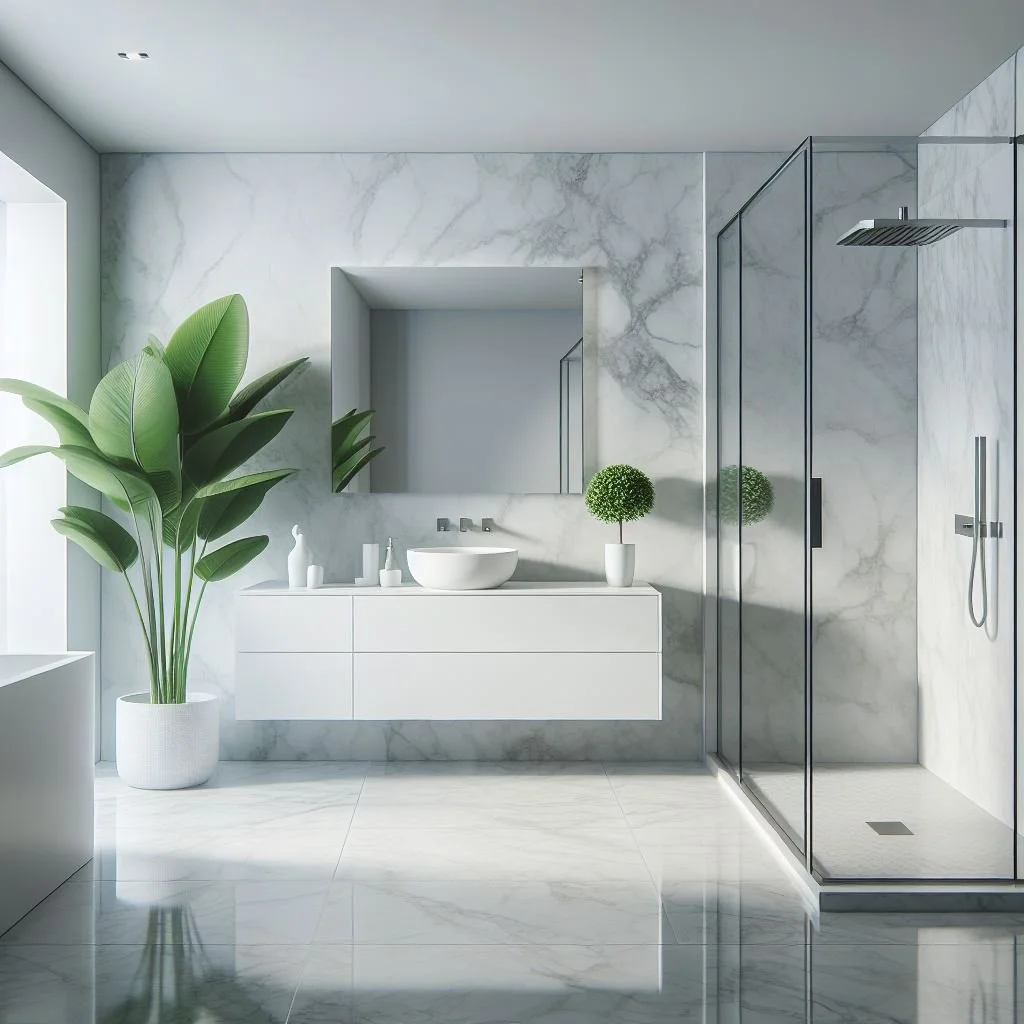 Choose water-saving fixtures, opt for sustainable materials like bamboo or recycled glass, and incorporate energy-efficient lighting to reduce your environmental impact.