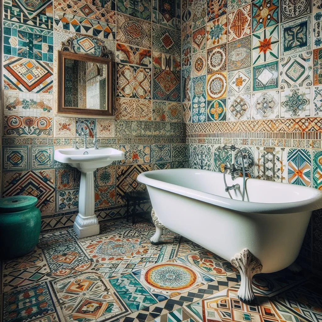 Elevate your bathroom design to a work of art with the inclusion of artistic tilework showcasing intricate mosaic patterns or geometric hexagonal tiles. These captivating designs serve as stunning focal points, infusing your bathroom walls and floors with texture and visual intrigue. Whether it's the timeless elegance of mosaic patterns or the modern allure of hexagonal tiles, each tile contributes to a dynamic and visually stimulating environment. Embrace the opportunity to make a bold statement as you combine these artistic elements, creating a space that is as visually captivating as it is functional. Let your bathroom become a canvas for creativity and expression, where every step is a masterpiece in design.