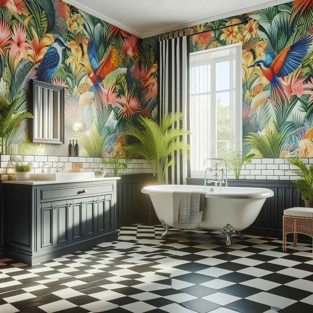 Inject personality into your bathroom by incorporating bold wallpaper adorned with striking geometric patterns or vibrant botanical prints, igniting visual interest and making a bold statement in the space. Whether it's the dynamic energy of geometric shapes or the lush beauty of botanical illustrations, these eye-catching wallpapers infuse the room with character and charm, transforming it into a unique and inviting sanctuary. Embrace the opportunity to express your individuality and creativity as you adorn your bathroom walls with patterns that captivate the eye and elevate the ambiance. With every glance, these bold wallpapers invite exploration and delight, adding a touch of personality and vibrancy to your bathing experience.