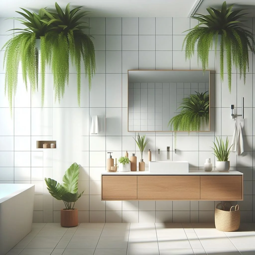 Infuse vitality into your bathroom with the addition of potted plants or vertical gardens, introducing a refreshing touch of nature to your modern design. These green accents not only enhance the aesthetic appeal of the space but also contribute to a sense of tranquility and well-being. Potted plants placed strategically on countertops or shelves bring a burst of freshness and color, while vertical gardens mounted on walls maximize space and create a lush, botanical backdrop. Embrace the rejuvenating presence of nature as it thrives within your bathroom oasis, transforming it into a serene sanctuary where modernity meets natural beauty.