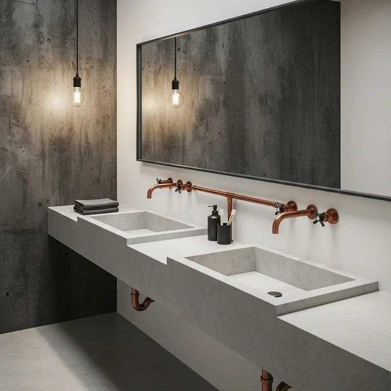 Make a bold statement with a concrete sink that brings raw industrial beauty and customizable design to your bathroom. Urban edge meets bathroom elegance! These heavyweight champions can be cast in any shape, size, or color, making them perfect for custom spaces. The material's versatility allows for integrated drainboards, soap dishes, or even decorative elements cast right into the design. Sealed properly, concrete becomes water-resistant and surprisingly smooth to the touch. The thermal mass keeps water temperature comfortable longer than traditional materials. Choose from polished finishes for modern appeal or leave them raw for authentic industrial vibes. Embedded aggregates like glass or stones create unique textures and visual interest. Your concrete sink becomes the custom masterpiece that proves bathroom fixtures can be both functional art and conversation starters.
