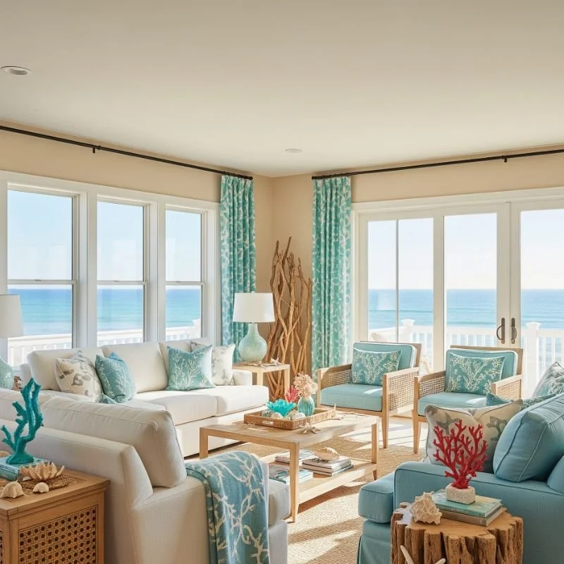 A1: Absolutely! Use sandy neutrals, whites, and natural wood tones for subtle coastal style.