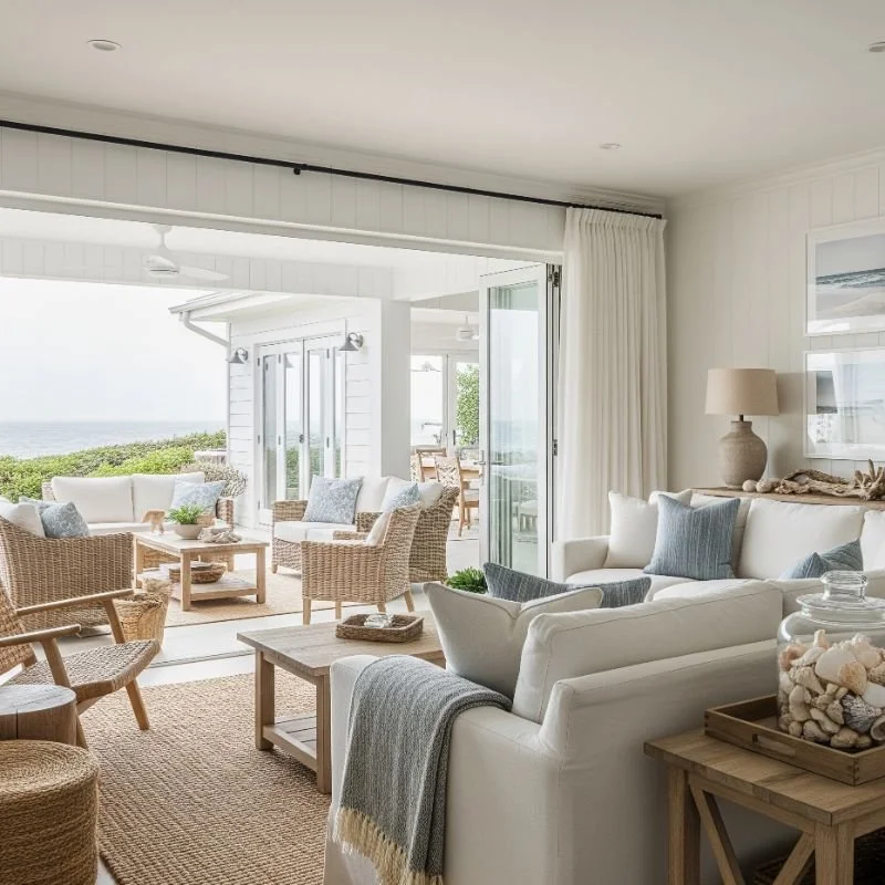 A4: Yes! Choose sophisticated coastal elements like white linen sofas and subtle nautical accents.