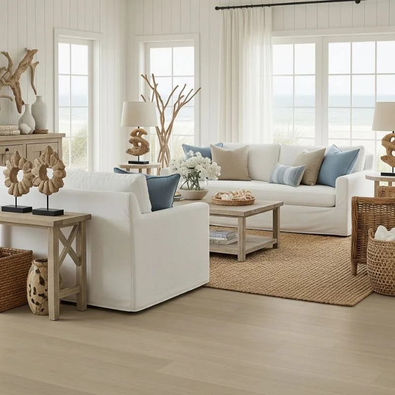 A3: Light hardwood, whitewashed planks, or natural fiber carpets work beautifully for coastal spaces.