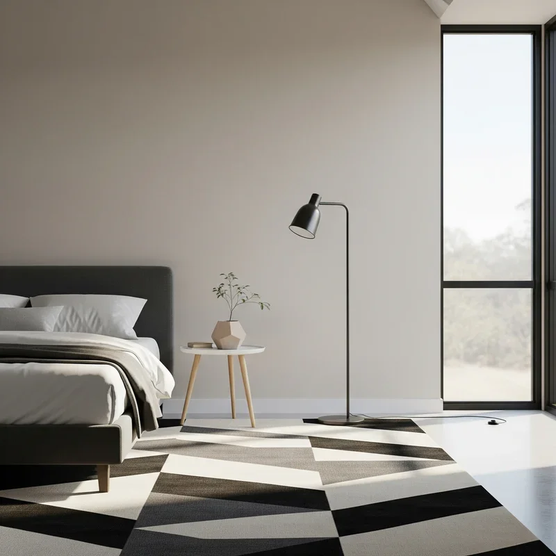 Add contemporary sophistication with geometric pattern rugs that bring clean lines and bold design to your bedroom sanctuary. Mathematics never looked so stylish! Choose from hexagons, chevrons, diamonds, or abstract patterns that create visual rhythm across your floor. Black and white combinations offer timeless appeal, while colorful geometrics can tie together diverse decor elements. The structured patterns provide a counterpoint to soft bedding and flowing curtains, creating balanced design tension. Large-scale patterns work in spacious rooms, while smaller repeating motifs suit cozier spaces. Position the rug to align with architectural features like windows or doorways for enhanced visual flow. Mix geometric rugs with organic elements like plants or curved furniture for interesting contrast. Your geometric rug becomes the modern art piece that anchors your bedroom's contemporary aesthetic.