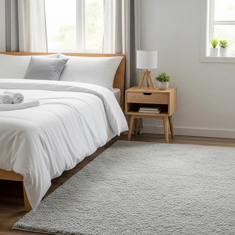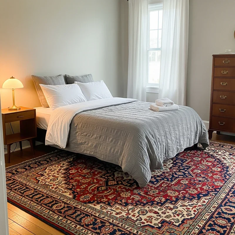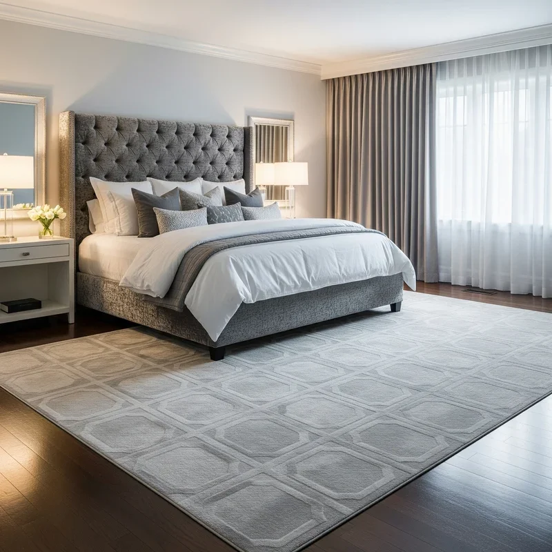 Go big or go home with an oversized area rug that makes your bedroom feel like a five-star hotel suite. Size really does matter here! Choose a rug large enough to extend at least 18-24 inches beyond each side of your bed, creating a generous border of softness. This approach unifies the sleeping area and makes the room appear larger and more cohesive. The expansive coverage means you'll never experience that jarring transition from soft rug to cold floor during midnight bathroom trips. Opt for low-pile options in high-traffic areas around the bed to prevent tripping hazards. The investment in a quality oversized rug pays dividends in both comfort and visual impact. Your bedroom transforms from a simple sleeping space into a luxurious retreat that makes every morning feel like a vacation.