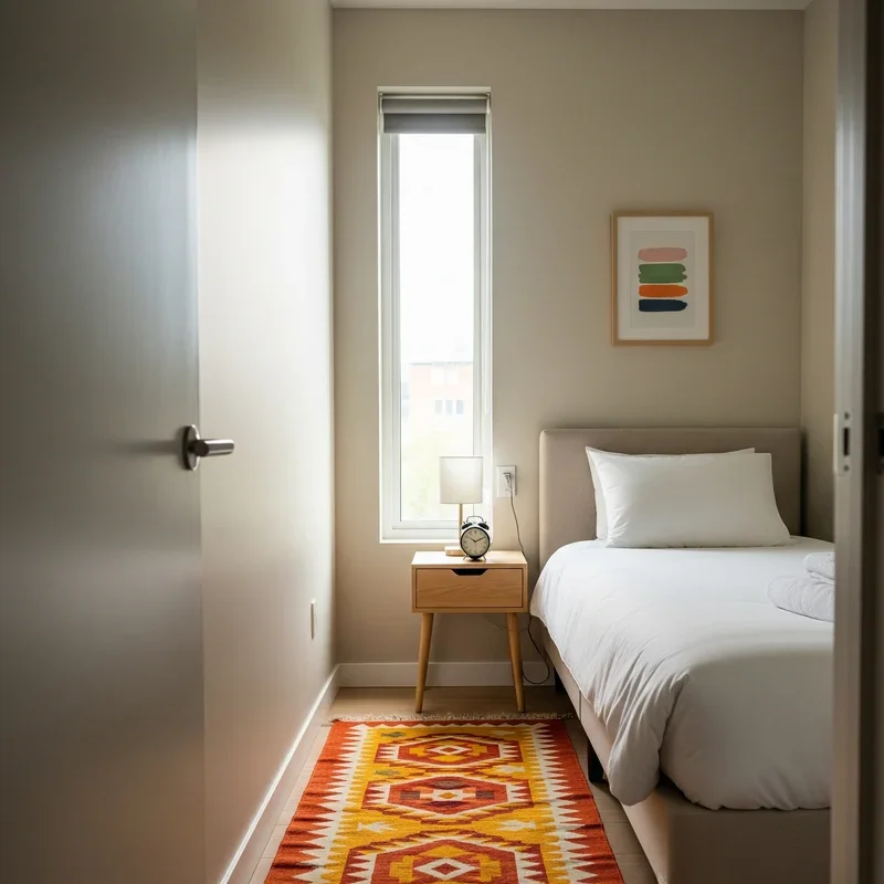 Maximize every inch with strategic runner placement that adds style to those awkward narrow spaces in your bedroom. Long and lean works perfectly! Place runners along the sides of your bed for a hotel-inspired look that protects high-traffic areas. Use them in walk-in closets or along hallway-like bedroom entrances to define pathways. Multiple matching runners create cohesion without the commitment of wall-to-wall carpeting. Choose patterns that elongate the space, like stripes or linear designs running lengthwise. The narrow format allows you to incorporate bold colors or patterns without overwhelming the room. Washable runners work great in areas prone to spills or heavy wear. Layer a runner over carpet for added texture and visual interest. Your runner rugs become the perfect solution for those tricky spaces that need both protection and style.