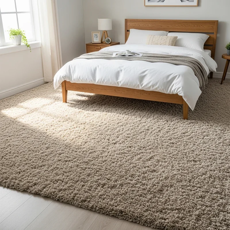Sink your toes into luxury with a plush shag rug that turns your bedroom floor into a cloud-like paradise. Comfort level: maximum fluffiness achieved! Modern shag rugs come in various pile heights, from subtle texture to dramatic 3-inch strands that swallow your feet. Choose lighter colors to brighten the room or deep jewel tones for drama and sophistication. The deep pile provides excellent insulation, keeping your feet warm during cold mornings and reducing energy costs. Position strategically beside the bed where you'll appreciate the softness most, or go wall-to-wall for total indulgence. Regular maintenance with a vacuum's beater bar keeps the shag looking fresh and prevents matting. Consider wool or synthetic blends that resist shedding and maintain their loft longer. Your shag rug becomes the ultimate comfort feature that makes your bedroom irresistibly cozy.