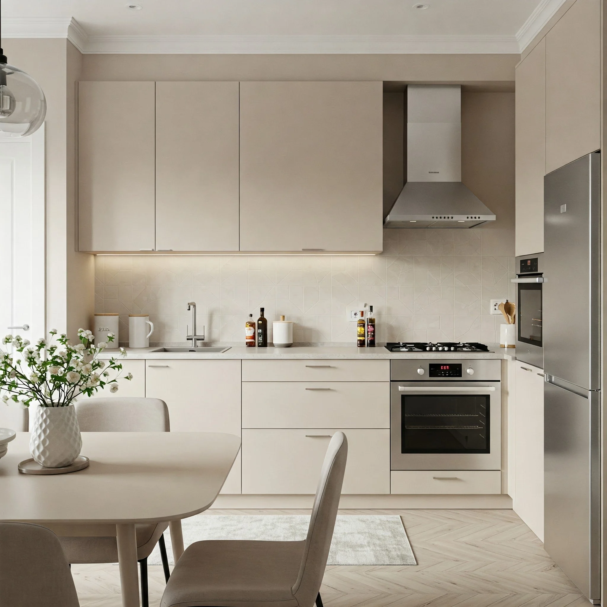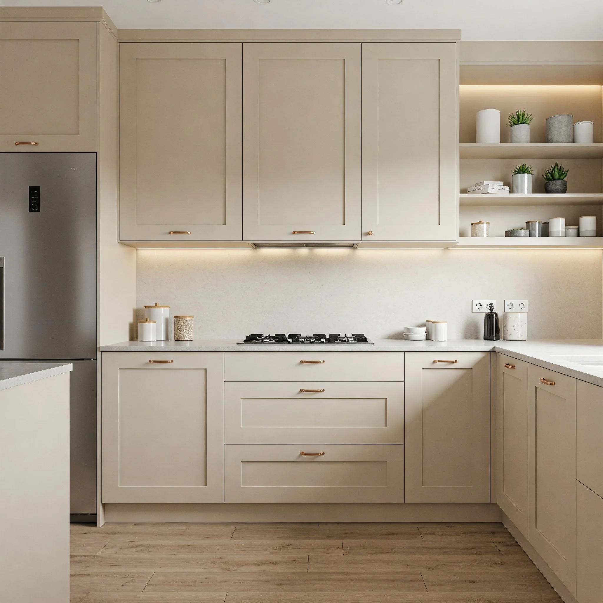 Modern touches in beige kitchens elevate the space with sleek lines and contemporary flair while retaining the warm, inviting atmosphere of neutral tones. This approach merges cutting-edge technology with timeless design, ensuring that your kitchen is both highly functional and aesthetically pleasing. Imagine state-of-the-art appliances seamlessly integrated into a space where the soft hue of beige offers a calming counterbalance to bold, modern fixtures. Innovative storage solutions, minimalist decor, and clean, geometric shapes contribute to a look that is both streamlined and charming. The modern elements serve as focal points, drawing your eye to the beauty of simplicity and sophistication. This design philosophy ensures that every aspect of your kitchen is optimized for both style and performance. Have you ever wondered how modern innovation can harmoniously coexist with classic warmth in a space you love?
