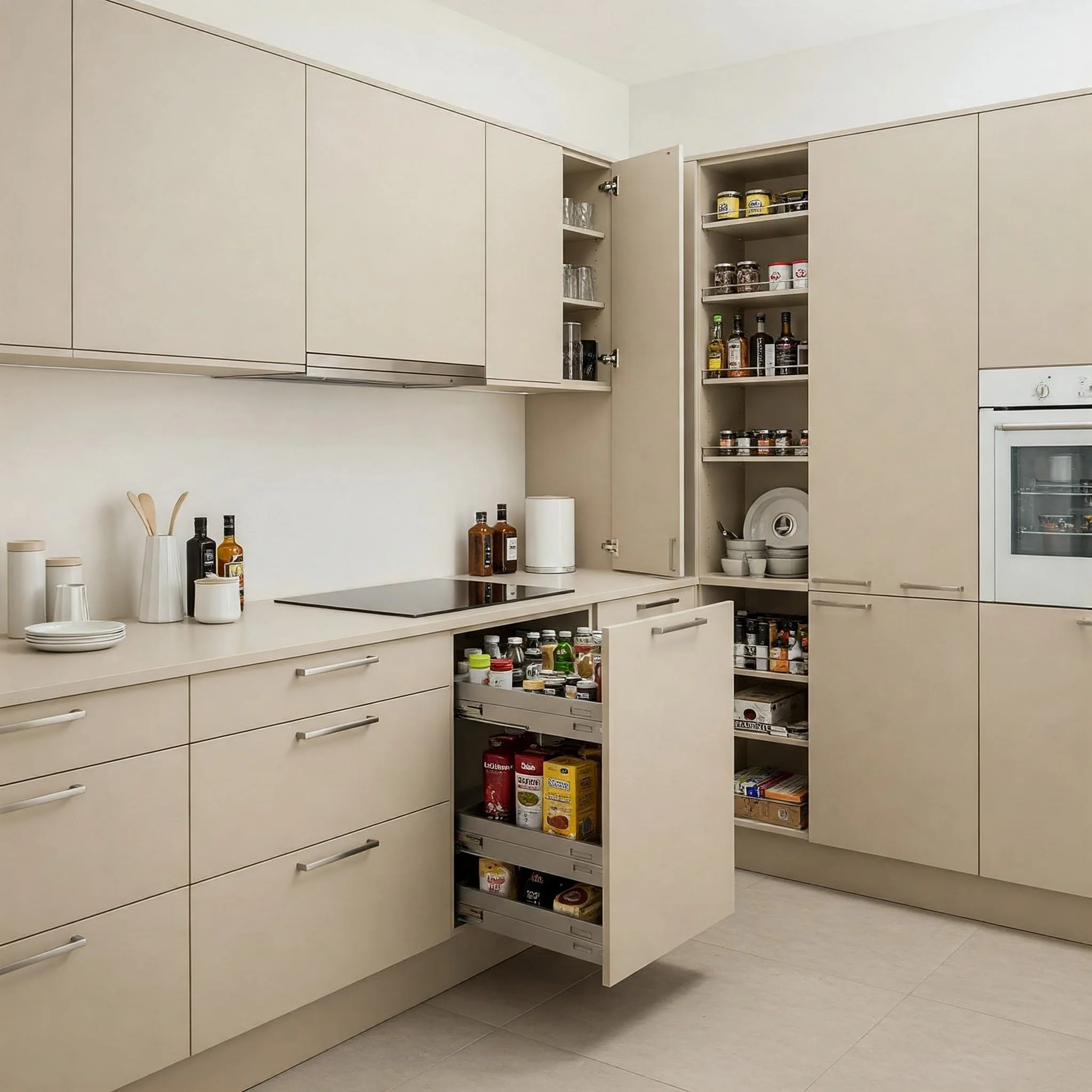 Storage in a beige kitchen doesn’t have to be mundane—it can be a stylish and integral part of the overall design. Innovative storage solutions, such as custom cabinetry, pull-out pantries, and cleverly concealed drawers, ensure that every item has its place, all while enhancing the kitchen’s aesthetic. The calming shade of beige serves as a backdrop that seamlessly integrates storage with style, making the space feel organized and inviting. Imagine sleek shelves that display your favorite cookbooks alongside functional baskets that hide clutter, creating an ambiance that is both practical and elegant. Every storage solution is designed to maximize space without sacrificing beauty, ensuring that your kitchen remains a sanctuary of order and creativity. Wouldn’t it be wonderful to have a kitchen that not only looks stunning but also functions flawlessly every day?