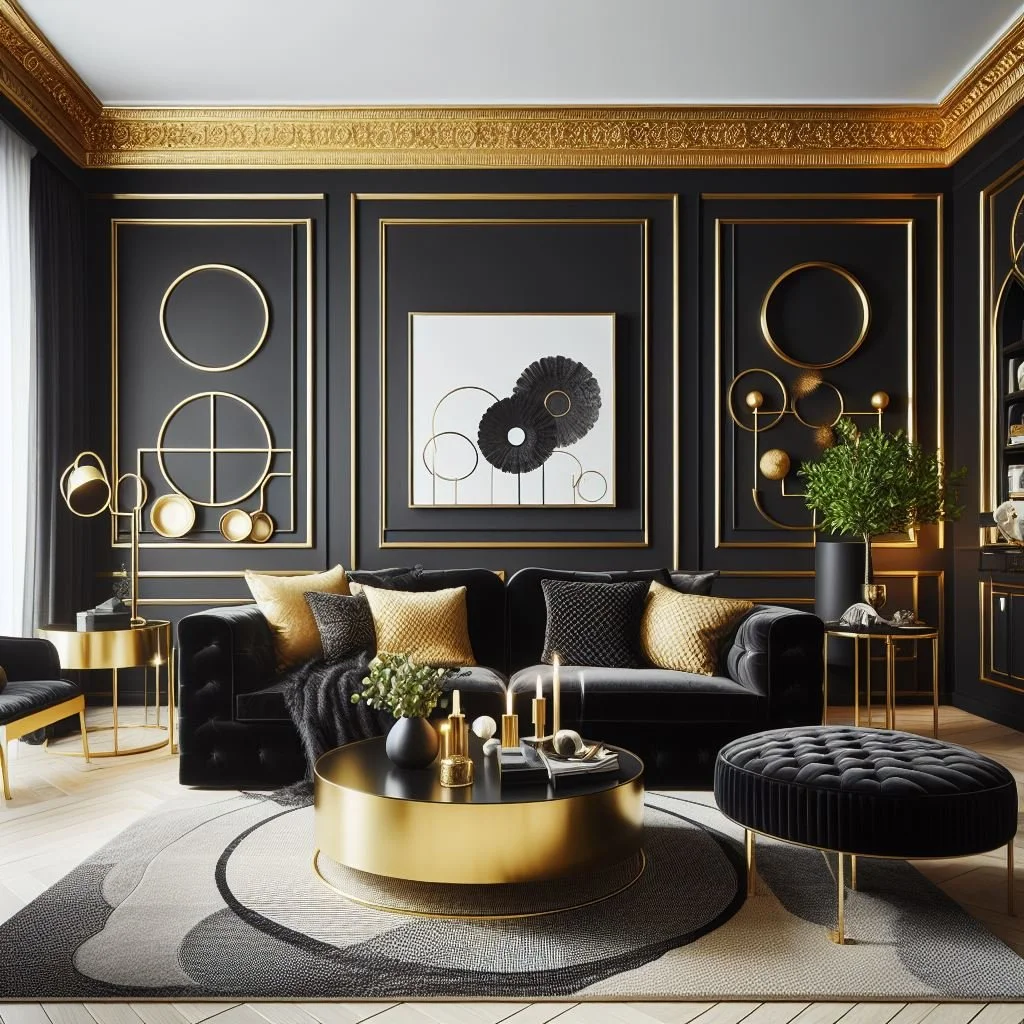 Accent colors like ivory, cream, blush pink, or emerald green can complement black and gold beautifully, adding depth and warmth to the space.