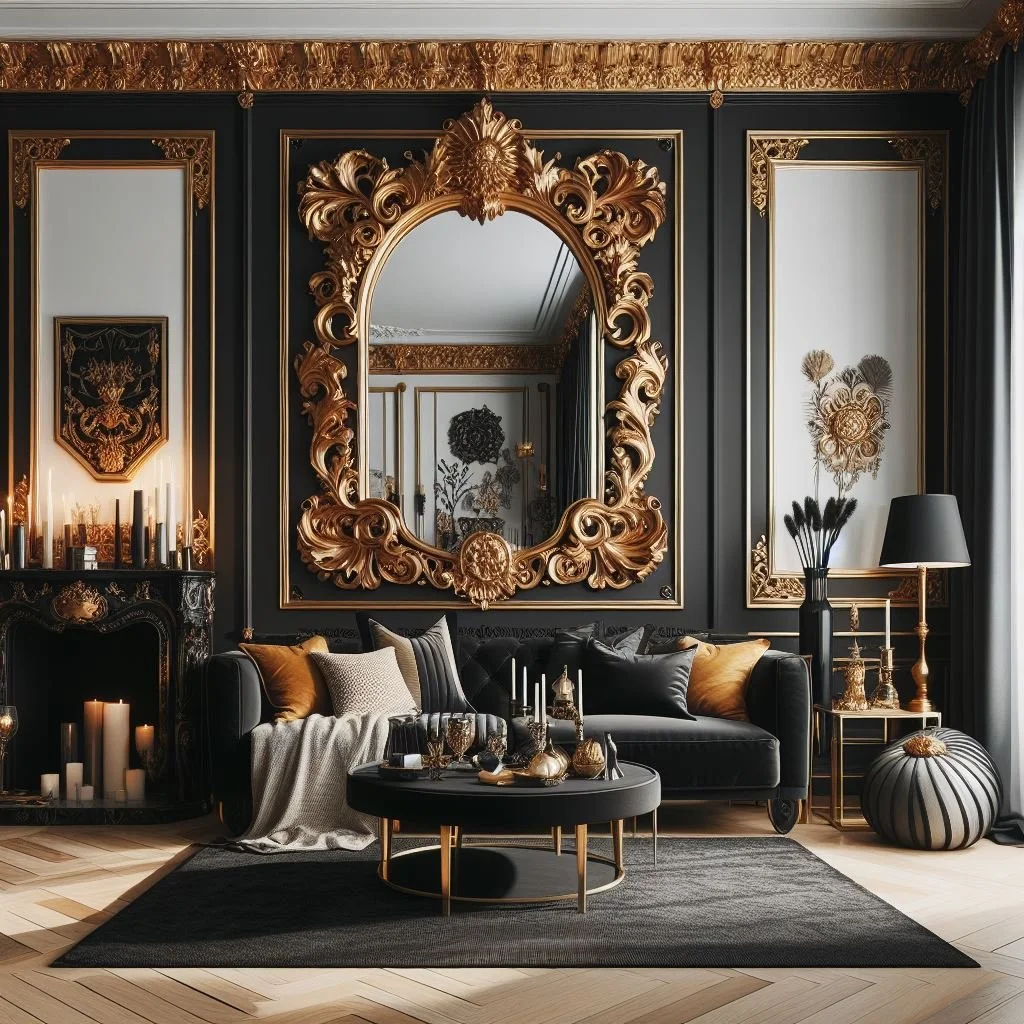 Black and gold can work well in various design styles, including Art Deco, Hollywood Regency, and contemporary glam, adding a touch of luxury and sophistication to each.