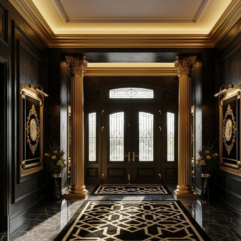 7. Bold Black and Gold Entryway Statement