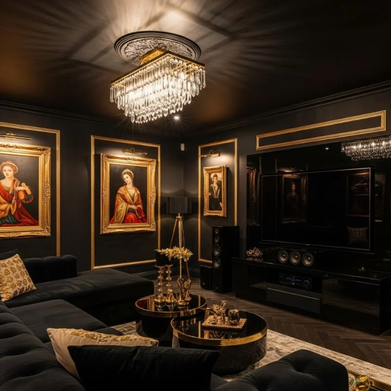 13. Luxe Black and Gold Home Theater