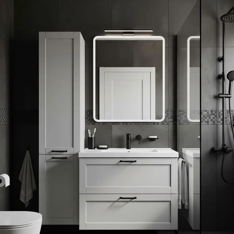 Elevate your bathroom storage with light grey cabinetry enhanced by striking matte black hardware that creates sophisticated contrast. Choose cabinet colors in soft dove grey, greige, or silvery tones that provide neutral backdrops for dramatic black handles, knobs, and hinges. This combination works beautifully with various design styles, from contemporary minimalism to transitional elegance. Consider unique hardware shapes like geometric pulls, vintage-inspired knobs, or sleek linear handles that add personality to functional elements. The contrast creates visual interest that makes simple cabinetry appear custom and expensive. This approach allows you to achieve high-end looks without major renovations, simply by updating paint colors and hardware for maximum impact with minimal investment.