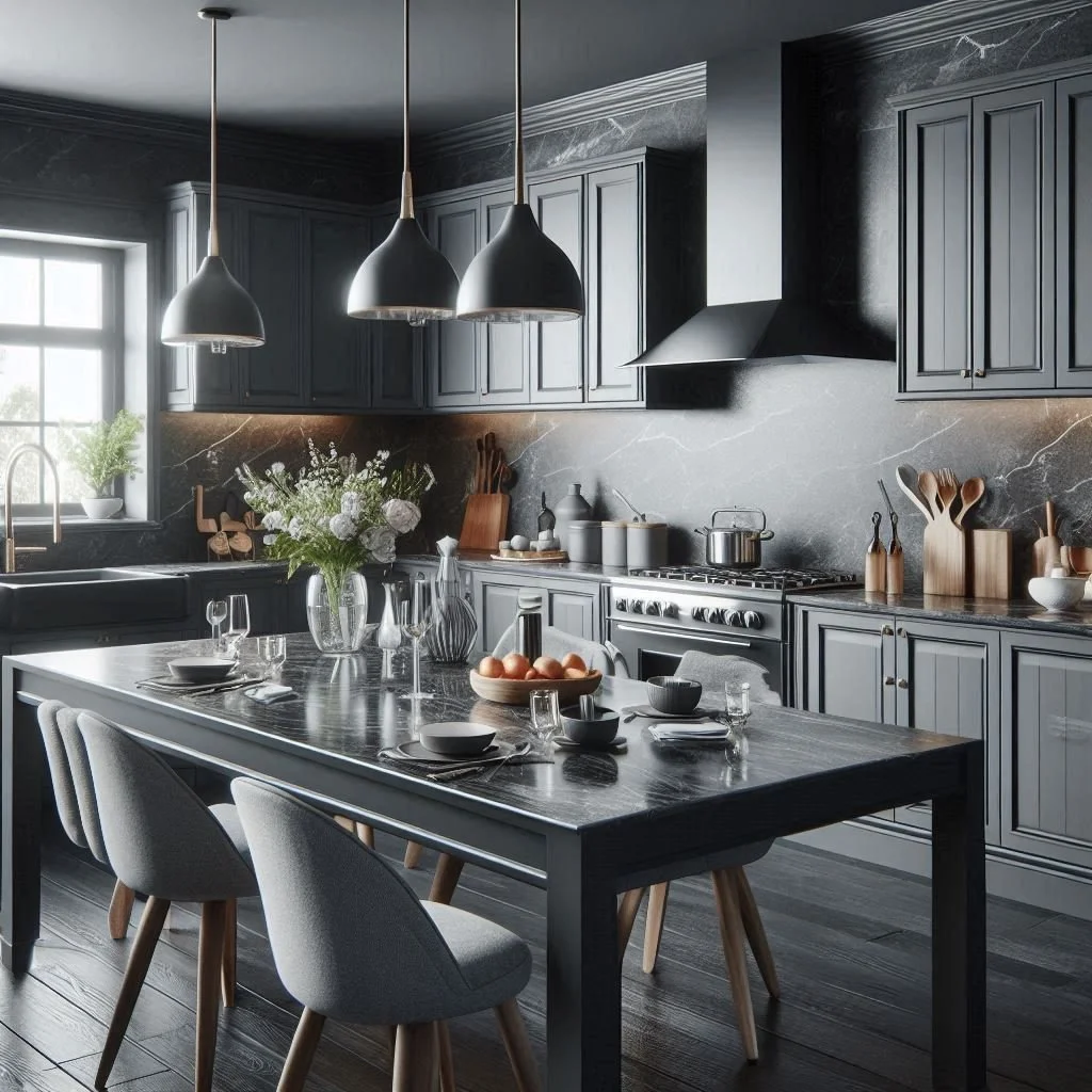 A black and grey kitchen island can serve as the centerpiece of your kitchen, combining style and functionality. It provides additional workspace, storage, and seating, making it an essential feature for any modern kitchen. By using contrasting materials, such as a black base paired with a grey countertop, you can create visual interest and a striking focal point. This contrast not only enhances the overall aesthetic but also adds depth and dimension to the space. Whether you use it for meal prep, casual dining, or extra storage, a black and grey kitchen island can elevate the design and efficiency of your kitchen.