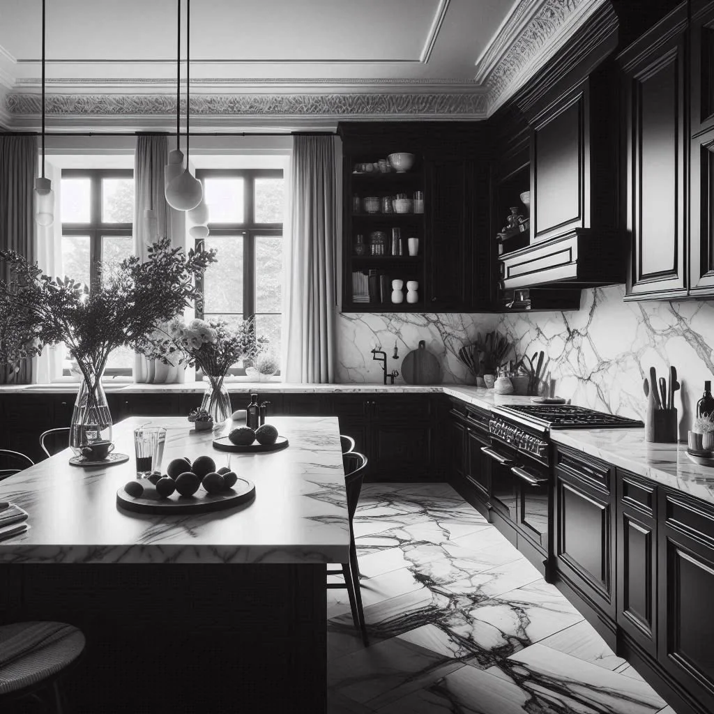 Marble countertops with subtle veining can infuse a touch of luxury into your black and white kitchen. The natural patterns in marble create a striking contrast with solid colors, adding depth and elegance to the space. Pairing these countertops with sleek black or white cabinetry results in a cohesive and sophisticated look. The unique veining in marble brings a sense of timeless beauty and refinement, enhancing the overall aesthetic of your kitchen. This combination not only elevates the design but also creates a harmonious balance between the bold and the understated, making your kitchen both stylish and inviting.