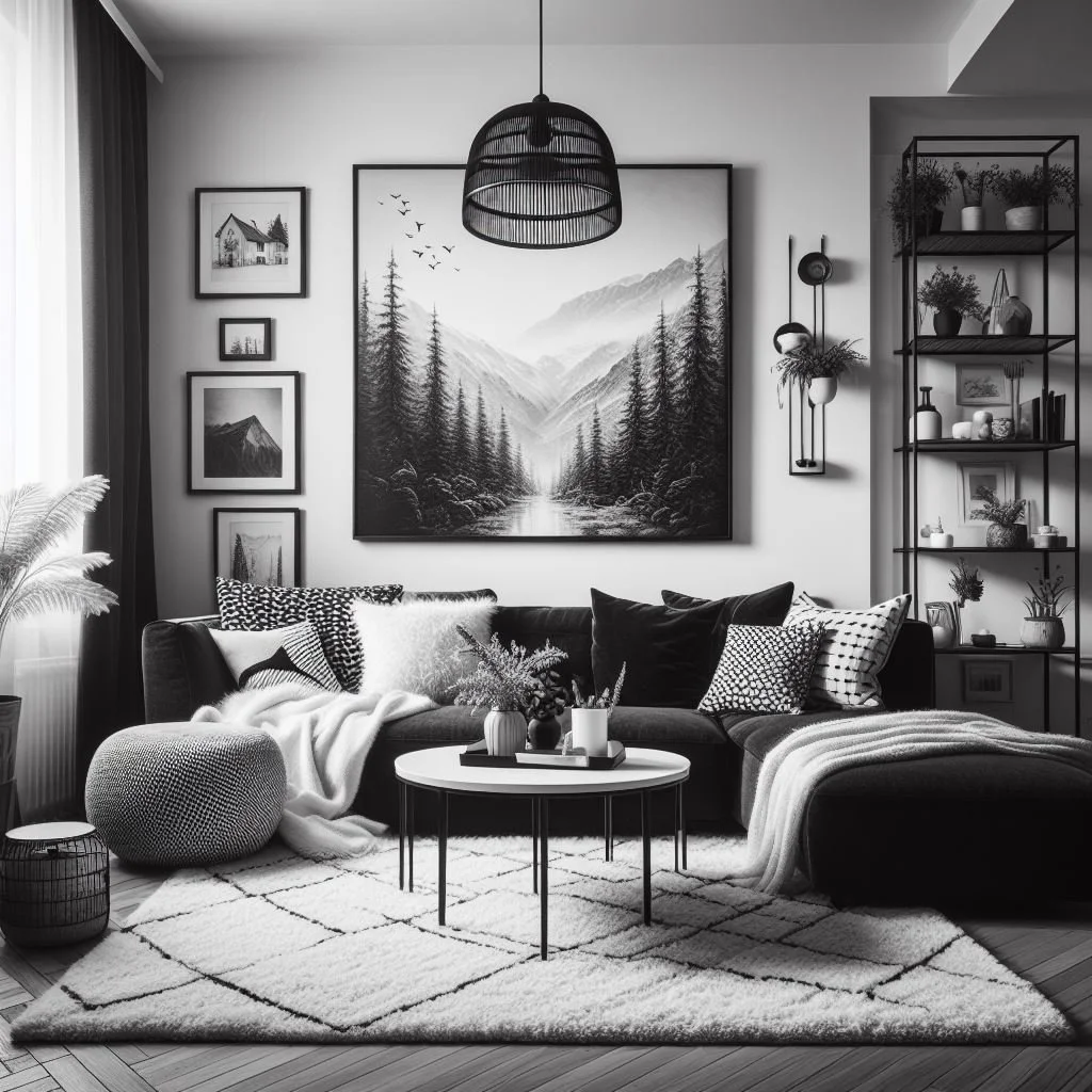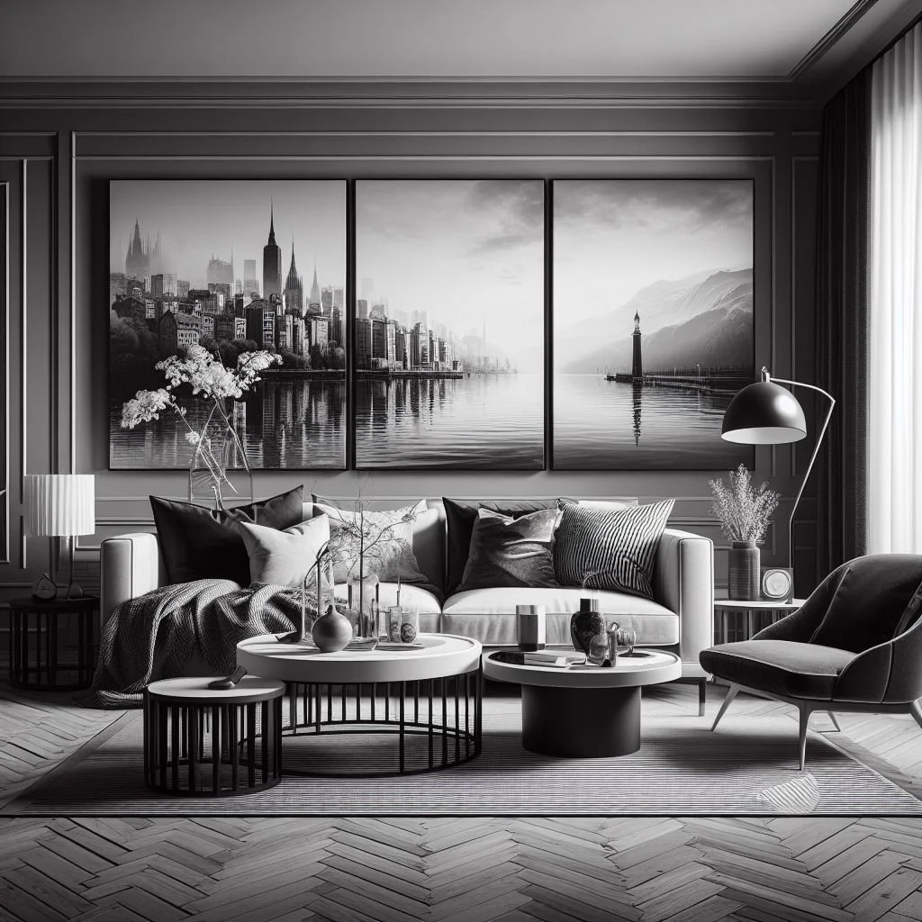 Adorn your walls with monochrome artwork in black and white tones. Whether it's striking abstract paintings, mesmerizing photographic prints, or intricate line drawings, the simplicity of monochrome art exudes a sense of sophistication and timeless charm. These art pieces not only serve as focal points but also contribute to the overall aesthetic harmony of the space, creating a cohesive and visually appealing decor scheme. By embracing the contrast and balance inherent in black and white compositions, you can elevate the style quotient of your living room while adding a touch of understated luxury.