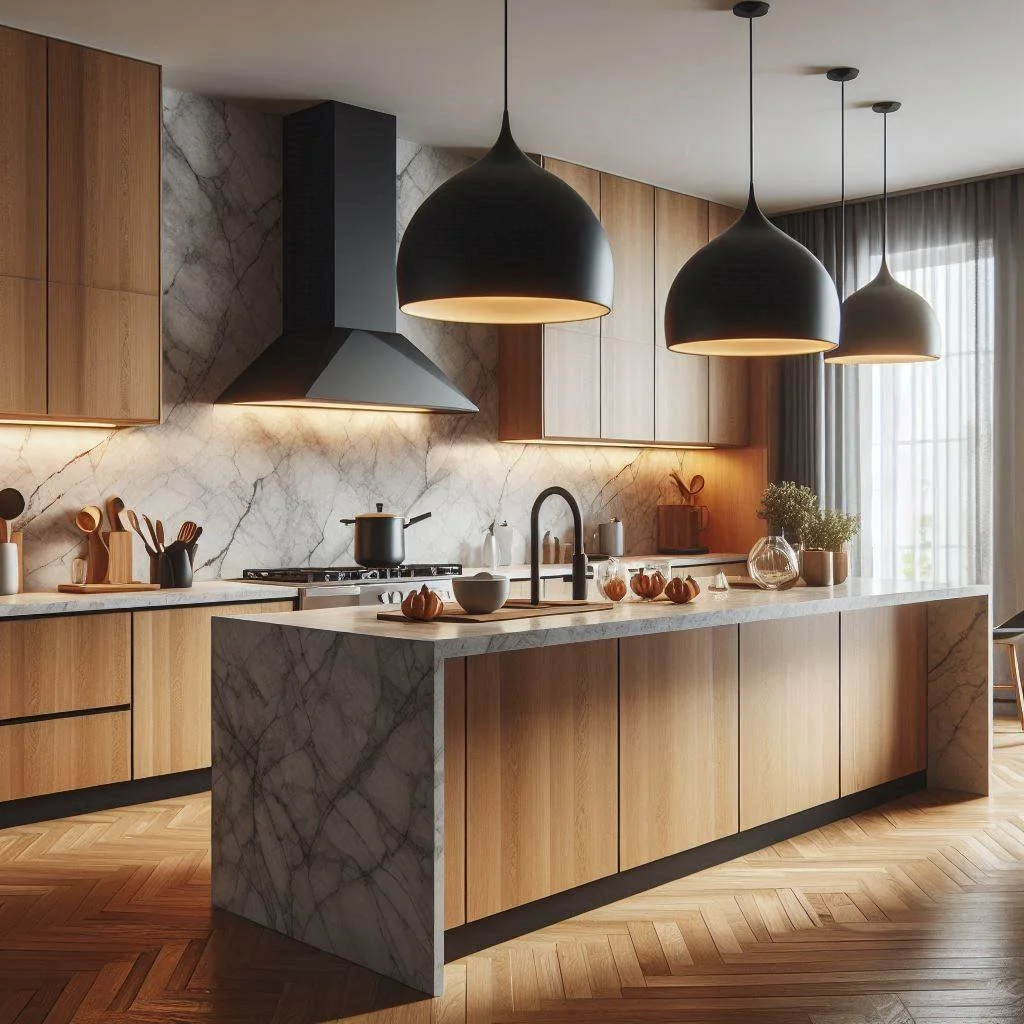 Nothing says luxury quite like black marble countertops. The striking natural veining in black marble adds both texture and elegance, creating a sophisticated focal point in your kitchen. Each piece of marble is unique, with swirling patterns of white, gray, or gold, which brings depth and character to the space. Pairing black marble countertops with a matching marble backsplash creates a seamless, cohesive look that feels high-end and refined. The glossy finish of the marble contrasts beautifully with matte black cabinets or other dark elements, offering a luxurious visual experience. This timeless combination exudes modern elegance while maintaining a sense of warmth, making your kitchen feel like an inviting, stylish haven. Black marble is not just a countertop choice—it's an investment in lasting beauty and opulence.
