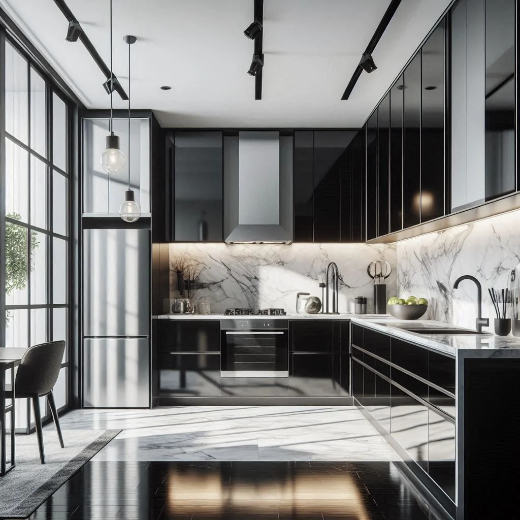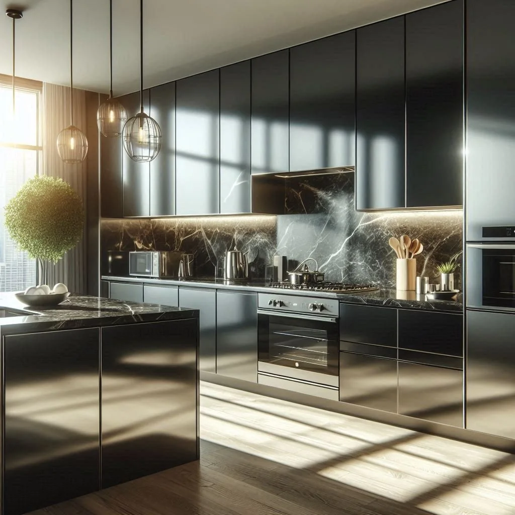 1. High-Gloss Black Cabinets