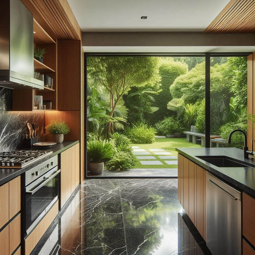 Maximizing natural light in a black kitchen is essential to prevent the space from feeling too dark or enclosed. Incorporating large windows or skylights allows sunlight to flood the room, brightening the space while enhancing the bold black design. Light-colored floors, such as pale wood or white tiles, further help to reflect natural light, creating a sense of openness. Additionally, incorporating reflective surfaces, like glossy black cabinets, mirrors, or stainless steel appliances, can bounce sunlight around the room, amplifying the light and creating a brighter, more inviting atmosphere. This combination of natural light and light-reflective elements ensures that your black kitchen feels airy, spacious, and warm, offering a balanced environment that showcases the beauty of the bold black palette without feeling oppressive.