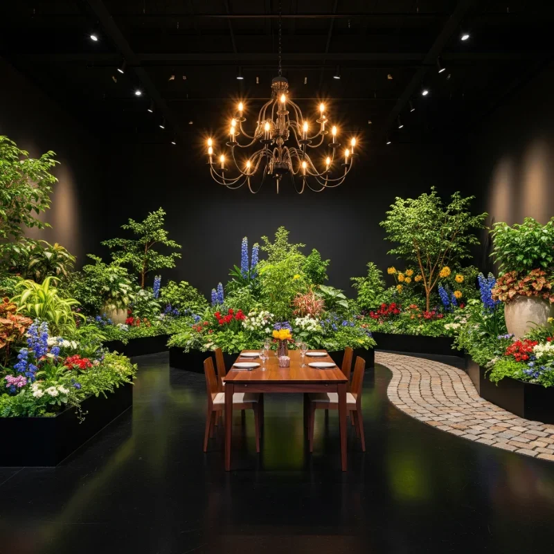 Create stunning contrast by pairing lush greenery with black backgrounds! Plants pop dramatically against dark walls, turning your space into an indoor jungle with sophisticated undertones. The chlorophyll green appears more vibrant, making even simple pothos look exotic. Create plant galleries with floating shelves, macramé hangers, or plant stands at varying heights. Large floor plants like fiddle leaf figs or monsteras become living sculptures. The organic shapes of leaves provide beautiful contrast to straight walls. Consider a living wall installation for maximum impact. Black walls hide water stains and soil splashes better than light colors, making them practical for plant parents. Add grow lights disguised as design elements to keep plants thriving. This combination brings life and energy to potentially heavy black rooms. Your space becomes a sophisticated greenhouse that celebrates nature's beauty against dramatic backdrops.