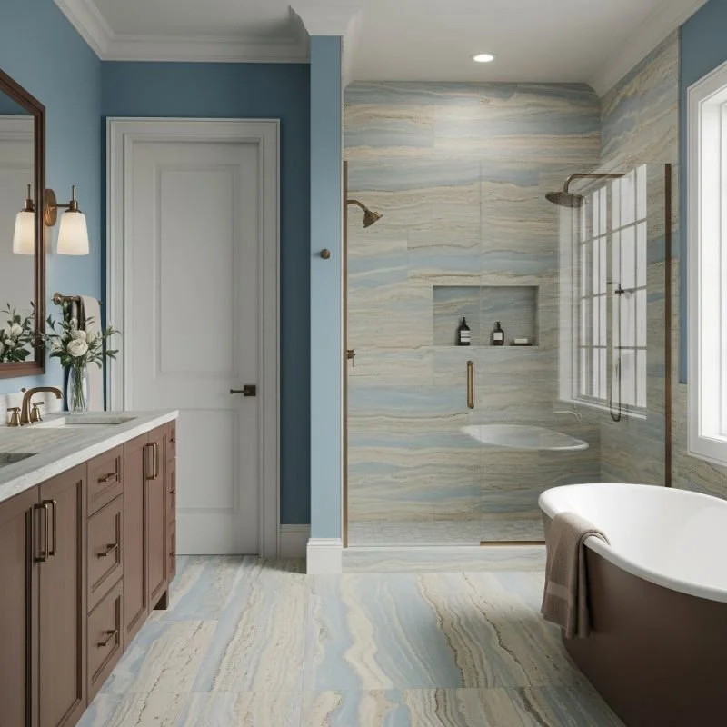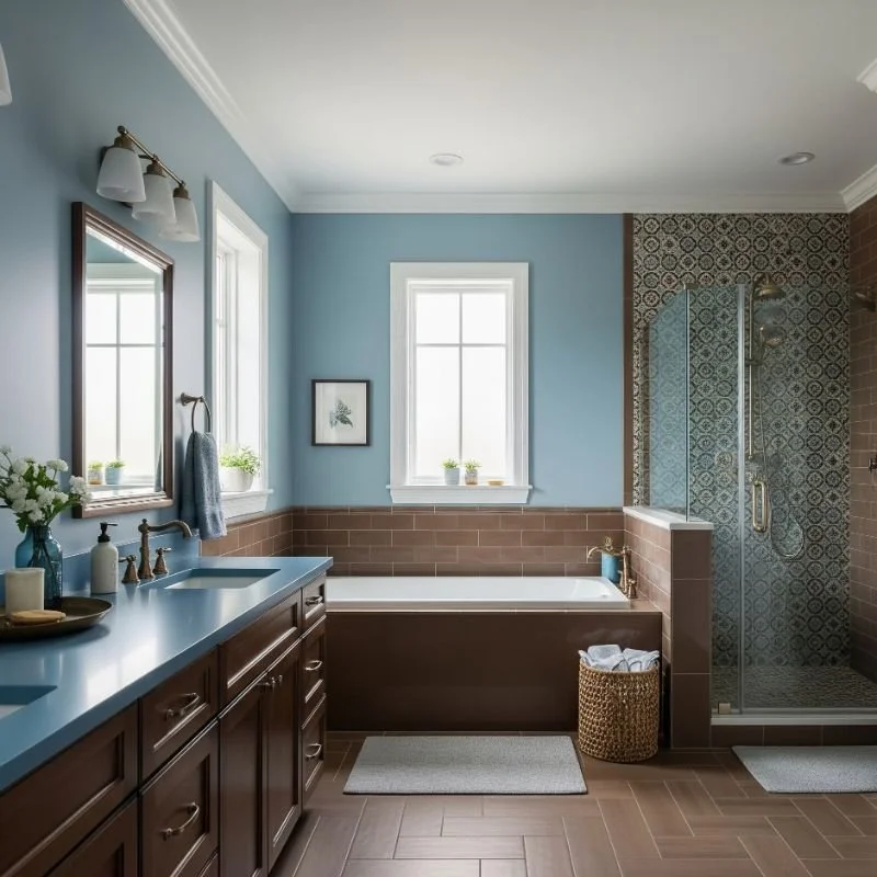 Blue and brown bathrooms offer the perfect blend of serenity and warmth for modern homes. These complementary colors create spaces that feel both energizing and grounding, turning daily routines into spa-like experiences. Whether you choose bold navy and walnut or subtle sky blue and bamboo, this versatile combination adapts to any style preference. The key lies in balancing cool and warm tones to create your perfect sanctuary.