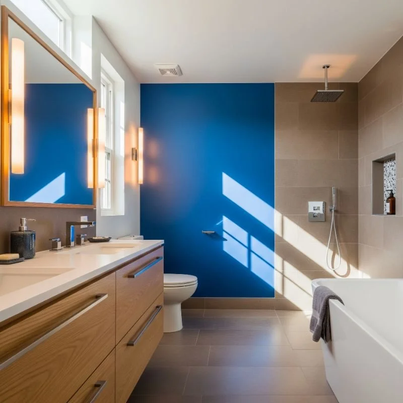 11. Royal Blue Accent Wall with Oak Vanity