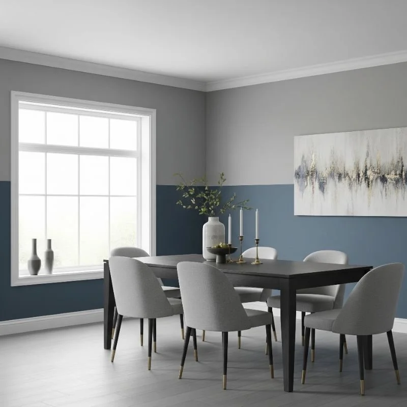 Why choose one color when you can have both? A two-toned paint design splits your walls horizontally, with grey on bottom and blue on top. This technique adds architectural interest without any construction. The grey bottom half protects against scuffs while the blue upper portion draws the eye upward. It's like wearing a grey skirt with a blue blouse, perfectly balanced and put-together. Use painter's tape to create a crisp line between colors, or add a chair rail for extra definition. This design works particularly well in rooms with high ceilings. Consider using different finishes, like matte grey and satin blue, to add another layer of visual interest.