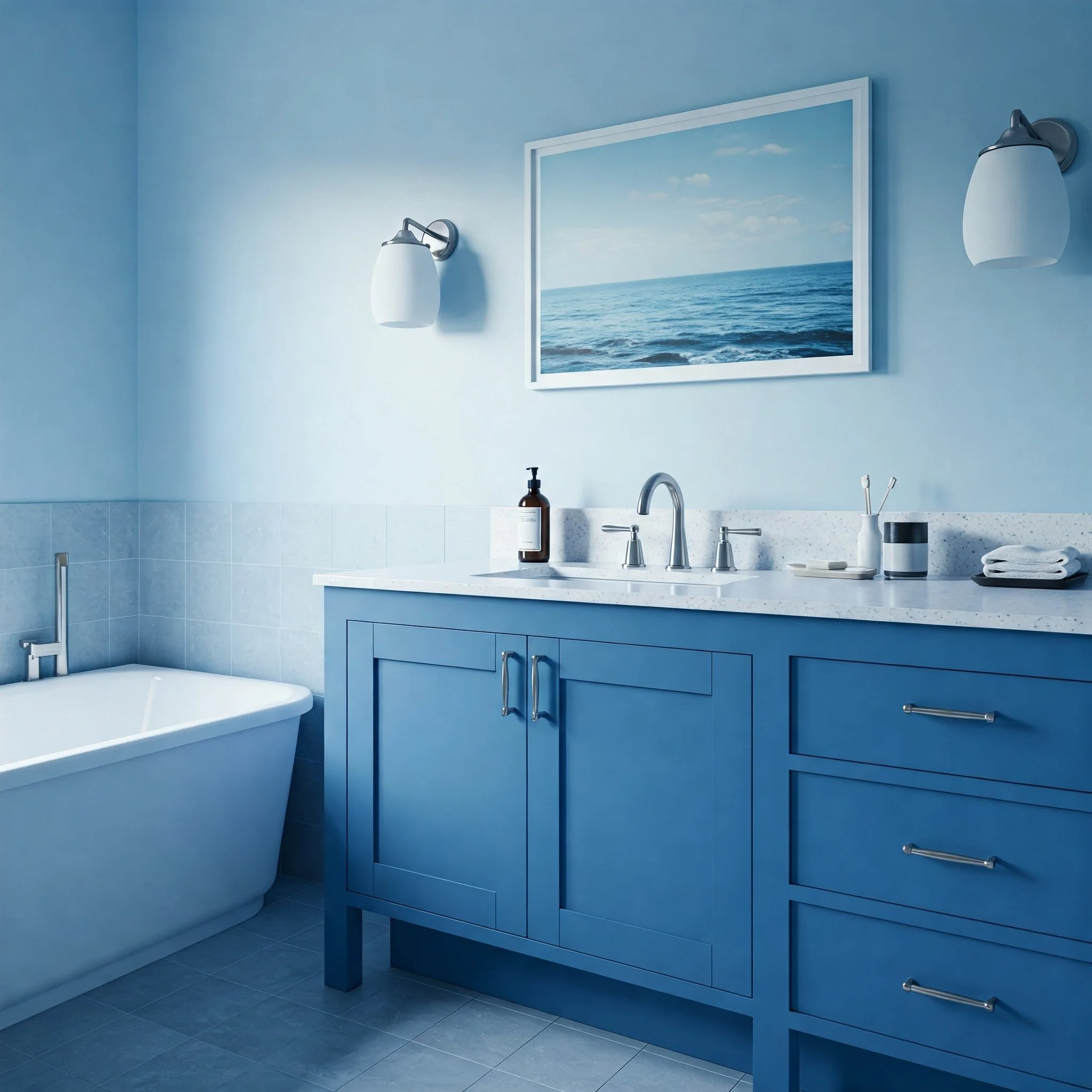 Perhaps you’re not ready for a full-on paint or tile makeover—that’s where accessories and accents save the day. Think plush navy towels, sky-blue shower curtains, or even a sapphire-colored soap dispenser. Small touches can have a surprisingly big impact, providing pops of serenity without requiring a massive renovation. It’s a bit like adding throw pillows to a sofa—they’re easy to swap out if you crave a fresh vibe. Plus, you can layer different shades of blue for extra depth: a pale blue rug here, a deeper teal vase there, all weaving together into a harmonious tapestry. You might even experiment with whimsical artwork featuring aquatic scenes or calming nature motifs. The key is to sprinkle these accents thoughtfully, ensuring each piece complements rather than overpowers the room’s overall color scheme.