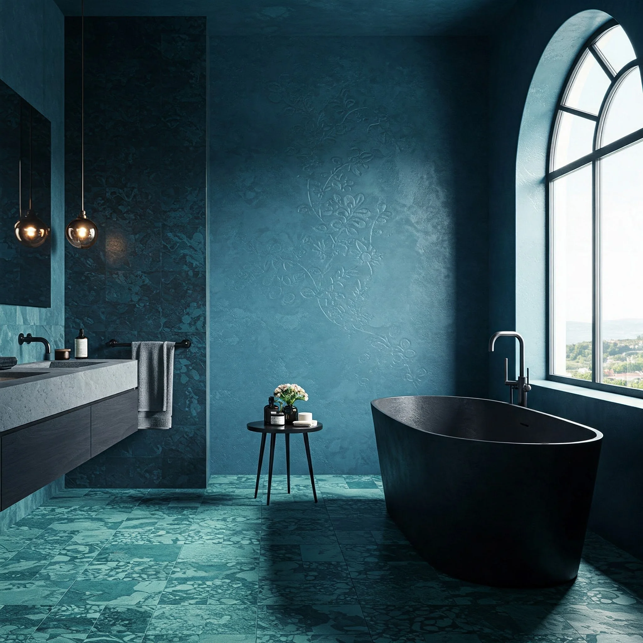 Yes! Opt for lighter blues or reflective tiles to brighten up the space. Supplement with sufficient artificial lighting to keep it from feeling gloomy.