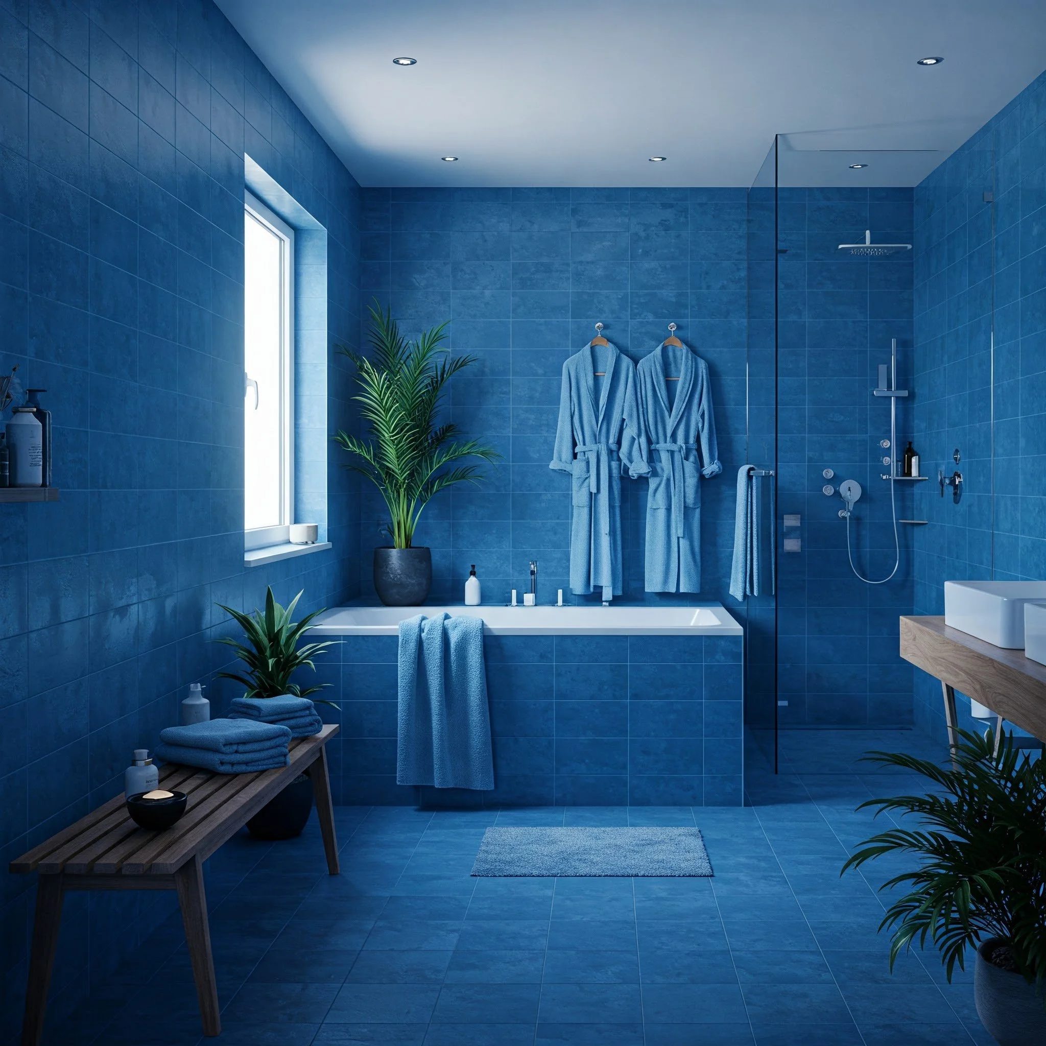 A spa-inspired bathroom isn’t just about color, but color certainly helps set the tone. Once you’ve chosen your ideal shade of blue—perhaps a soothing aqua or a more mysterious teal—think about adding wellness elements that elevate the space. Consider installing a rain showerhead or a deep soaking tub to promote relaxation. Aromatherapy diffusers can bring calming scents like lavender or eucalyptus, complementing the tranquil atmosphere evoked by the blue palette. Plush robes and towels, especially in complementary hues, add another layer of comfort. If you have the space, a small bench or stool can provide a meditative spot to rest while the shower warms up. These details turn your bathroom from a purely functional room into a holistic retreat, making each bath or shower a rejuvenating escape from daily stress.