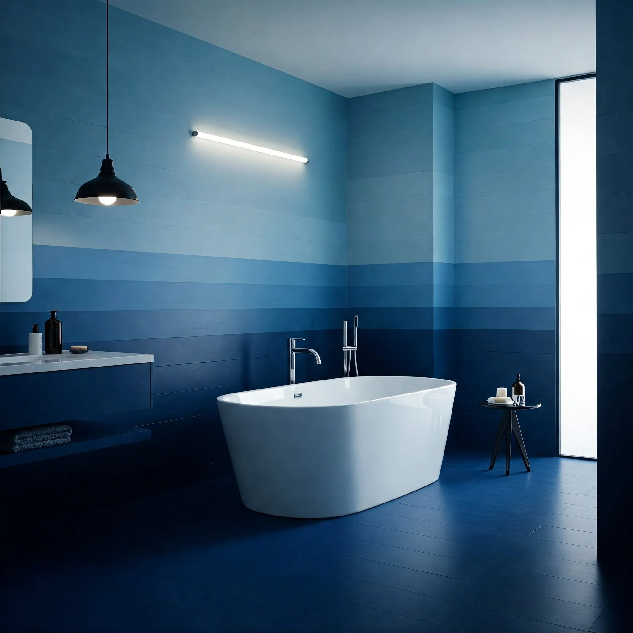1. Can I mix several shades of blue in a small bathroom?