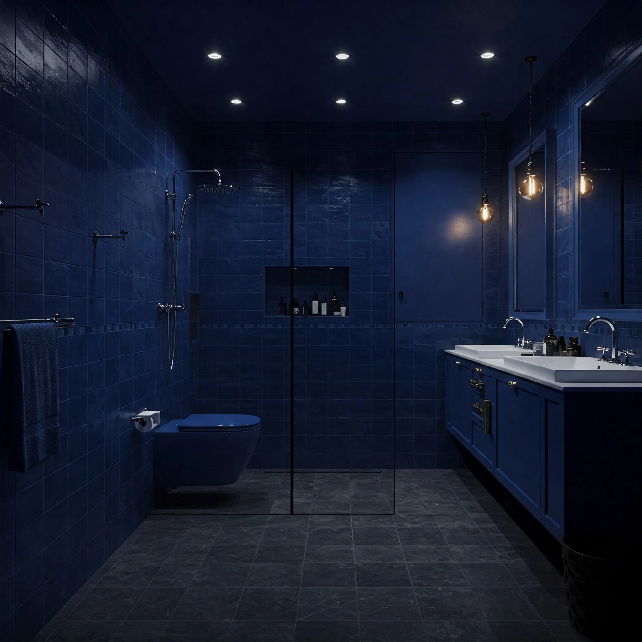 2. Will a dark blue bathroom make the space feel cramped?