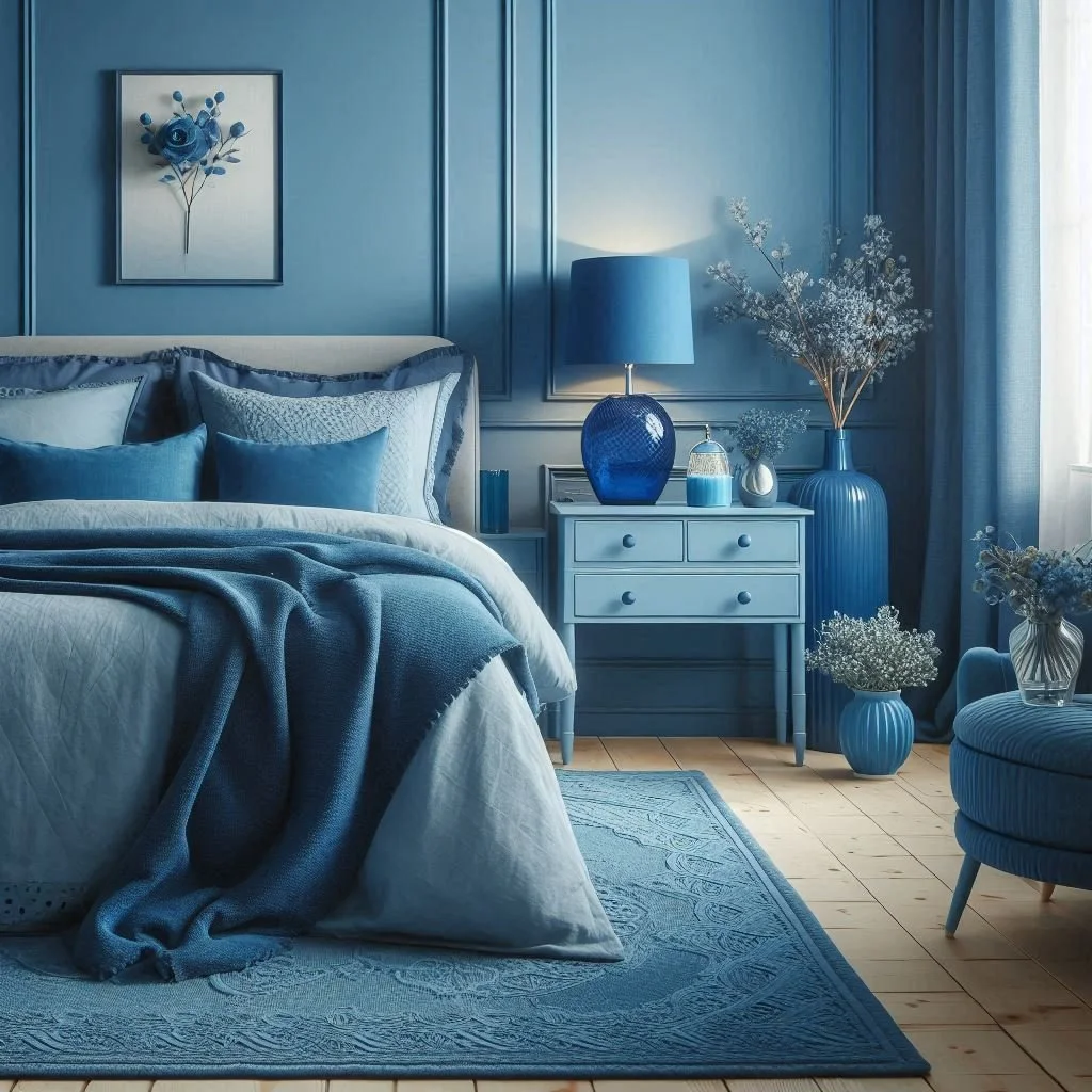 Start small with blue accessories like pillows, rugs, or artwork, and build from there.