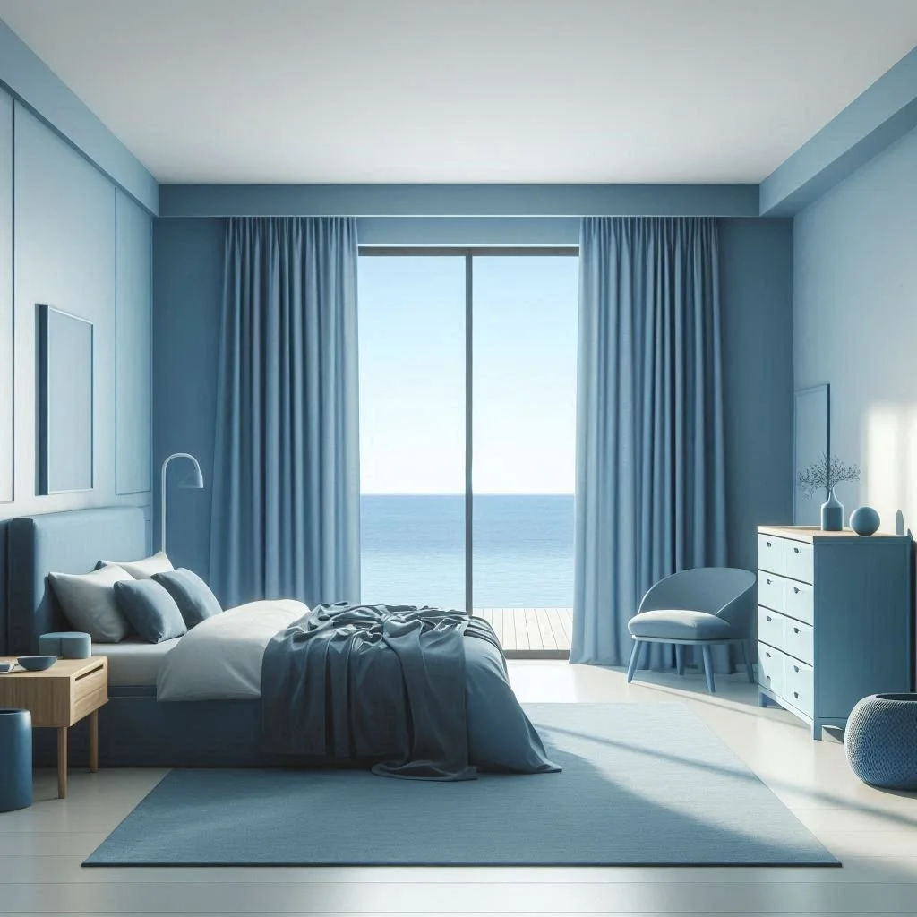 A minimalist blue bedroom is the perfect retreat for those who value simplicity and tranquility. Focus on clean lines, neutral accents, and a carefully curated palette of soft blues to create an uncluttered, serene atmosphere. Opt for light blue walls or bedding as the foundation, complemented by subtle touches of white, beige, or gray to maintain a harmonious and airy feel. Furniture with sleek, modern designs keeps the space streamlined, while a few carefully chosen decor pieces, like a simple vase or a framed piece of art, add personality without overwhelming the room. Avoid unnecessary clutter, instead prioritizing functionality and open space to enhance the calming vibe. This minimalist approach not only highlights the soothing qualities of blue but also transforms the bedroom into a peaceful sanctuary that promotes relaxation and rejuvenation.